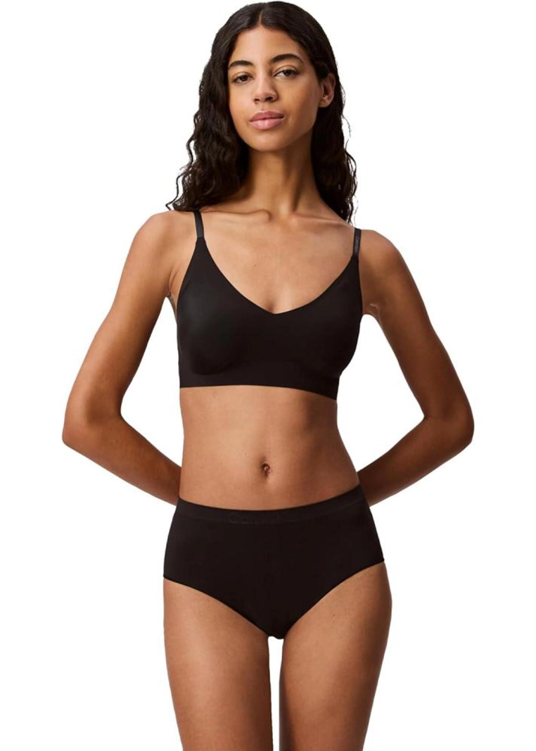 The Calvin Klein Women’s Invisibles Seamless Wirefree Triangle Bralette offers lightweight support, a smooth invisible fit under clothing, and all-day comfort with a modern minimalist style.