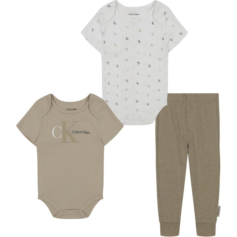Calvin Klein baby-boys 2 Bodysuits and Pant Set(Light Brown / Marshmallow)