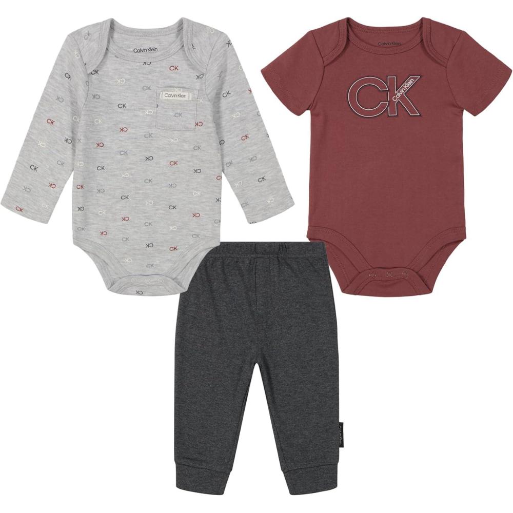 Calvin Klein baby-boys 2 Bodysuits and Pant Set(Platinum Heather/Apple Butter/Stealth Heather)
