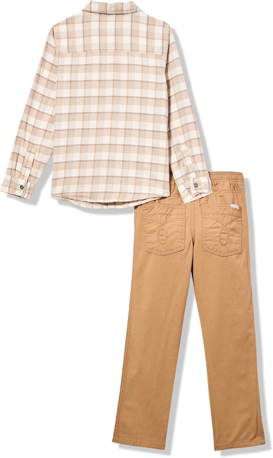 Calvin Klein boys 2 Pc Woven Woven Pant Set(Plaid/Tiger’s Eye)