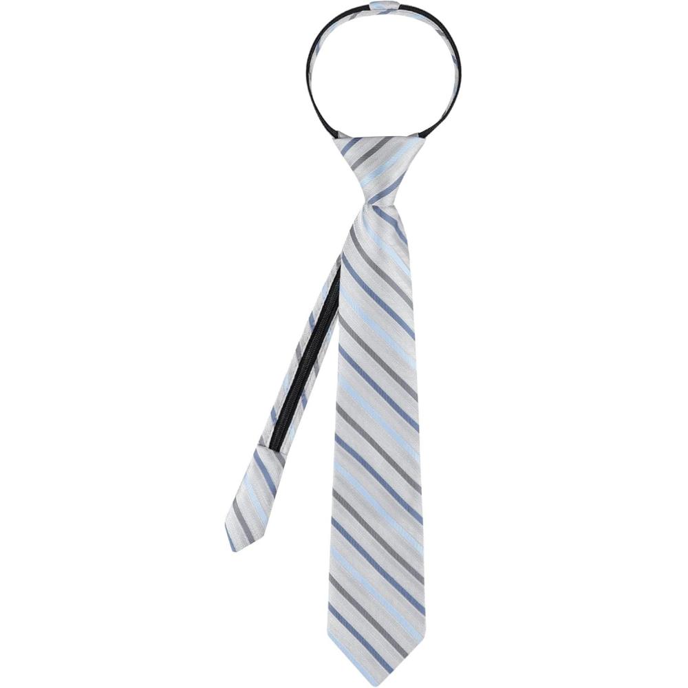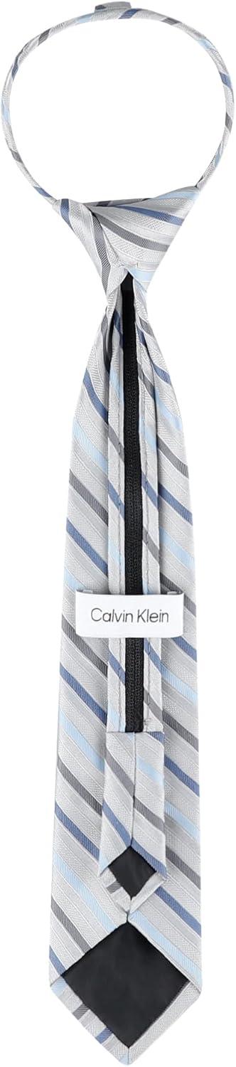 Calvin Klein boys Adjustable Pre-tied Zipper Tie – Big Boys(Silver Stripe Zip)