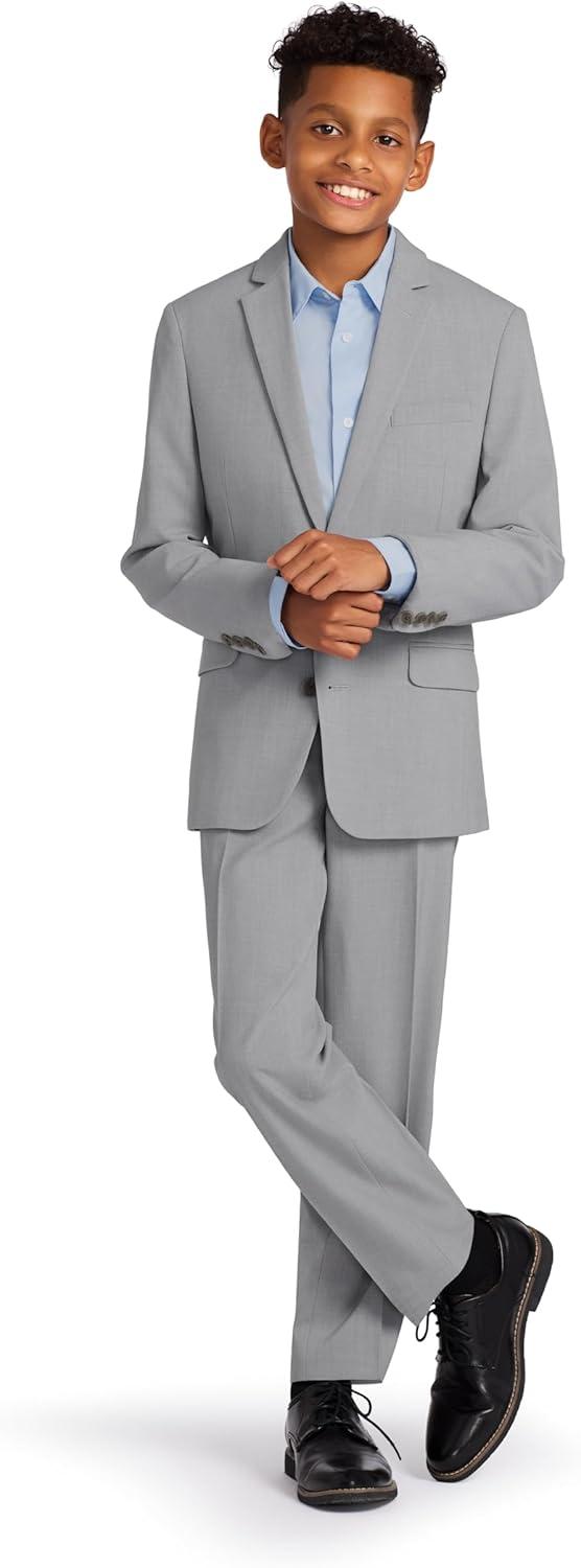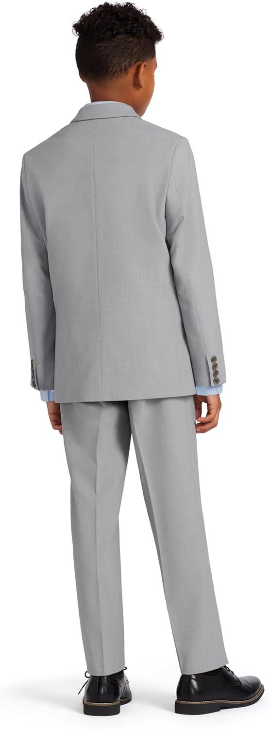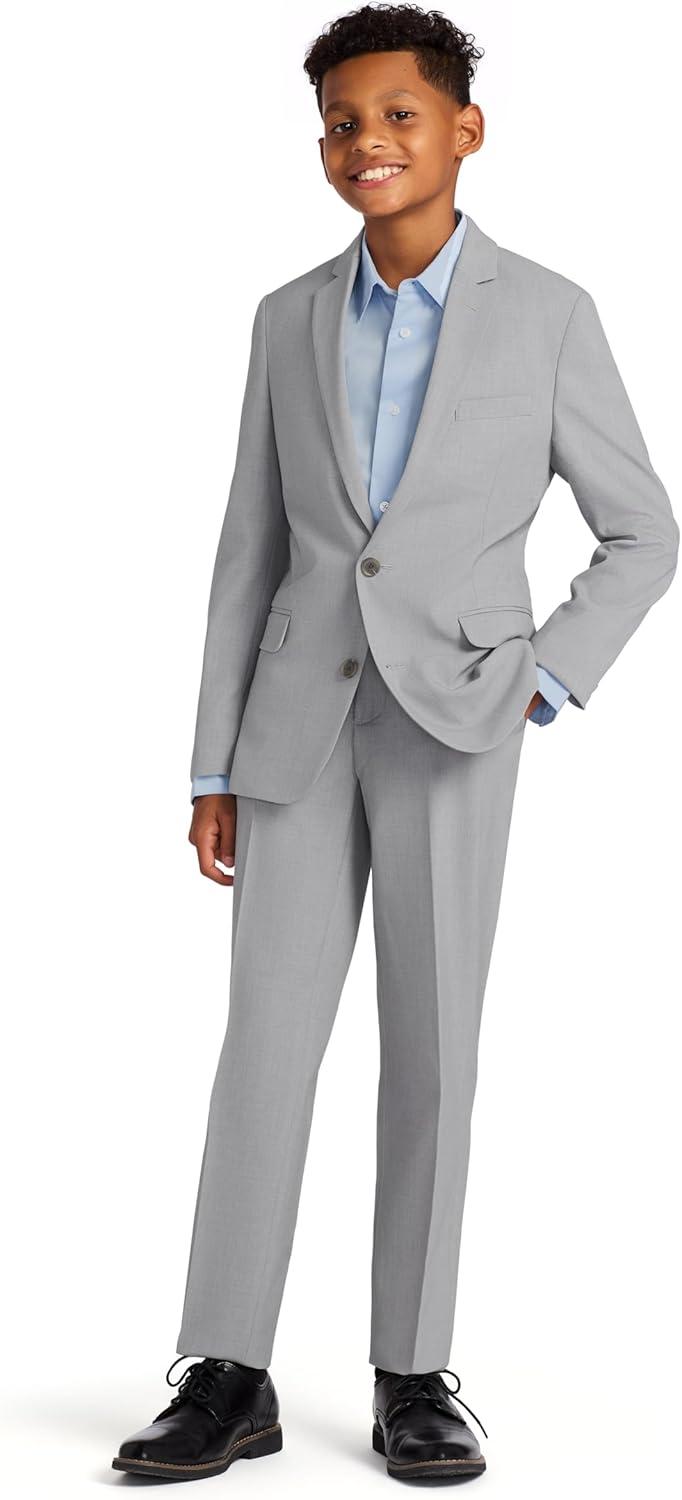 Calvin Klein Boys' Bi-Stretch Blazer Suit Jacket, 2-Button Single Breasted Closure, Buttoned Cuffs & Front Flap Pockets(Silver Metal)