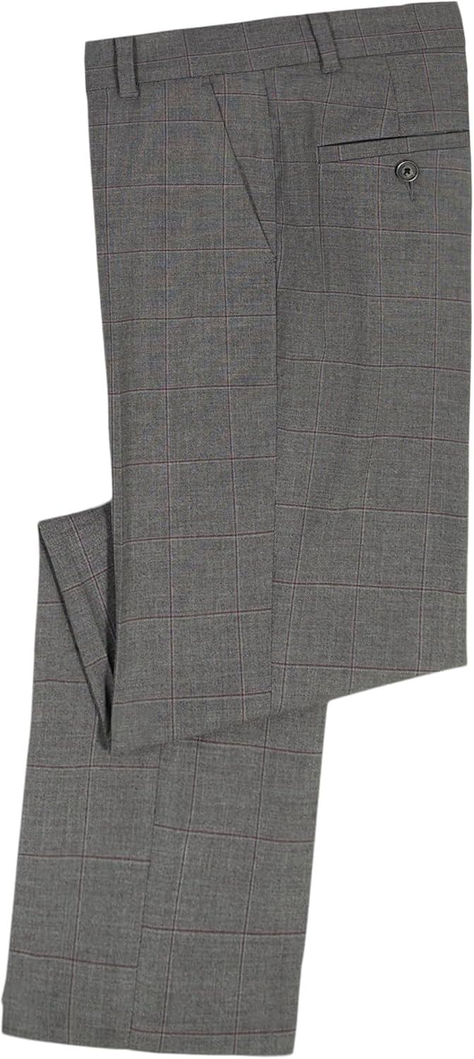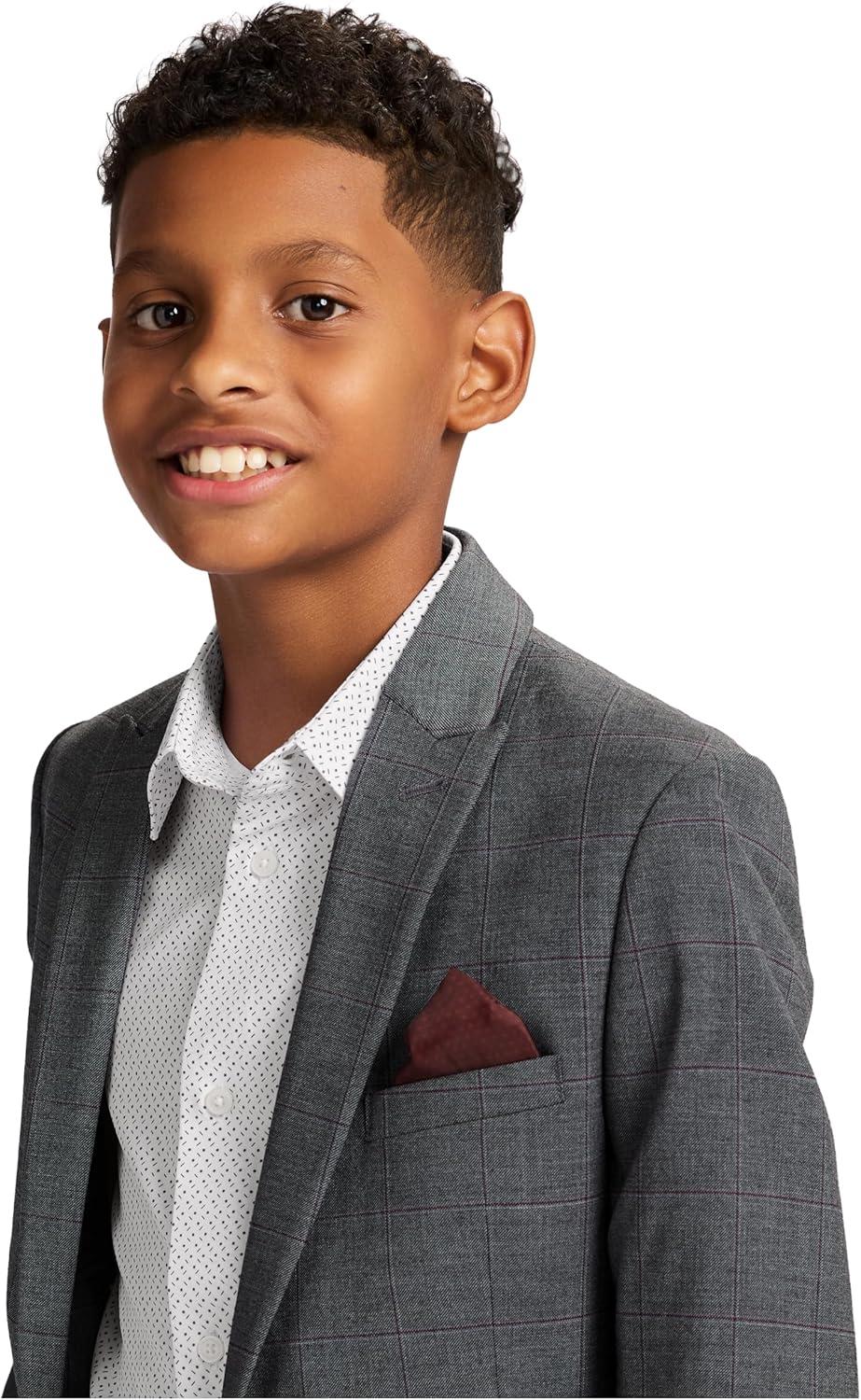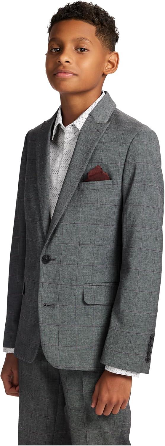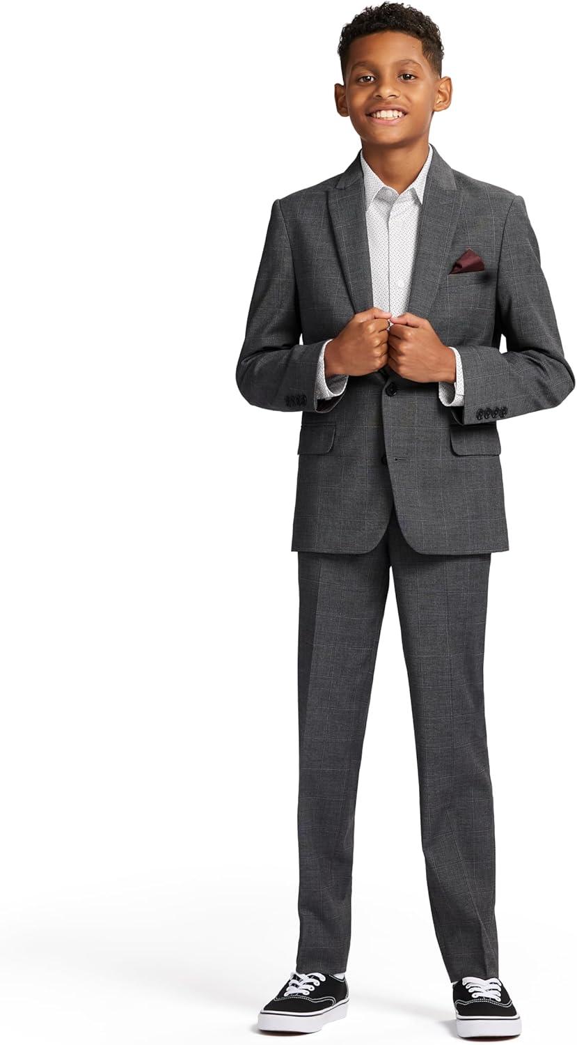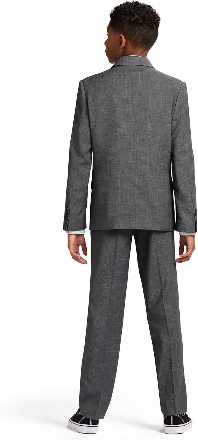Calvin Klein Boys' Flat Suit Dress Pant, Straight Leg Fit & Hemmed Bottom, Belt Loops & Functional Front Pockets(Grey Windowpane)