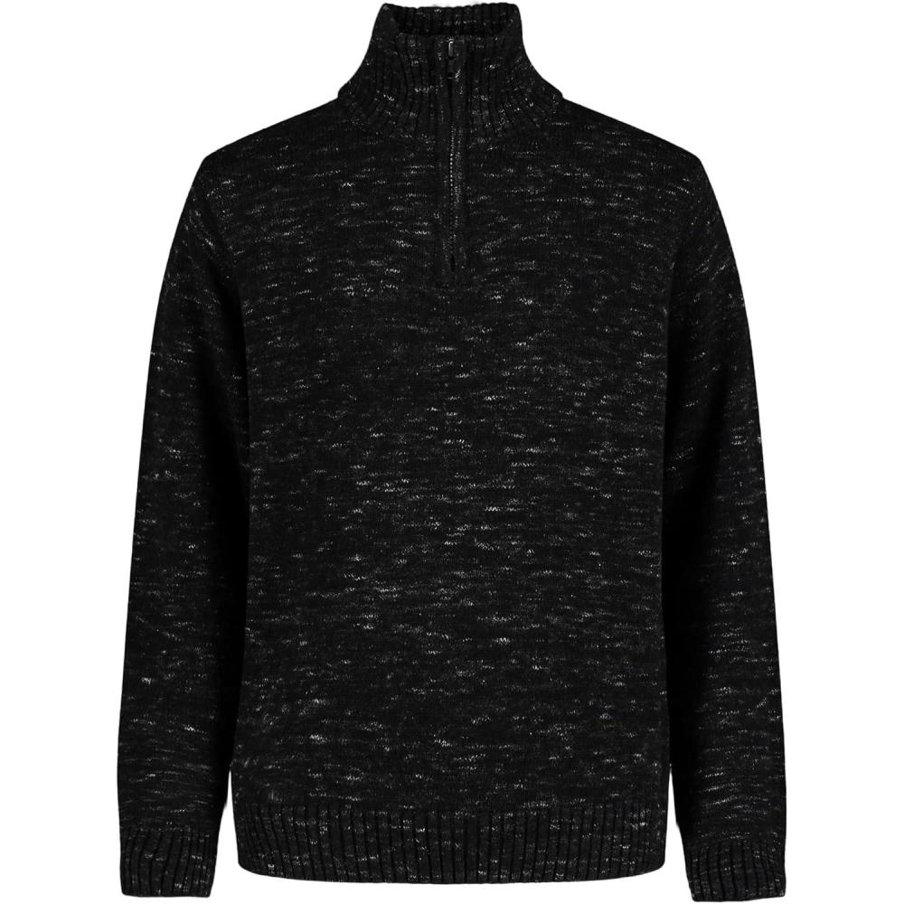 Calvin Klein Boys’ Half Zip Pullover Sweater, Ribbed Neckline & Logo Detailing(Black Space Dye)
