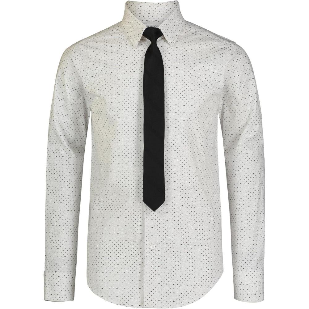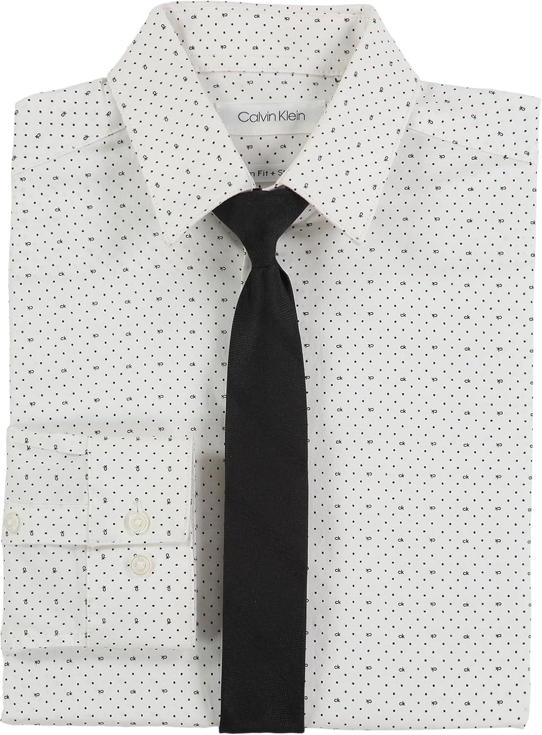 Calvin Klein Boys’ Long Sleeve Button-Down Collared Dress Shirt with Tie and Chest Pocket(Logo White)