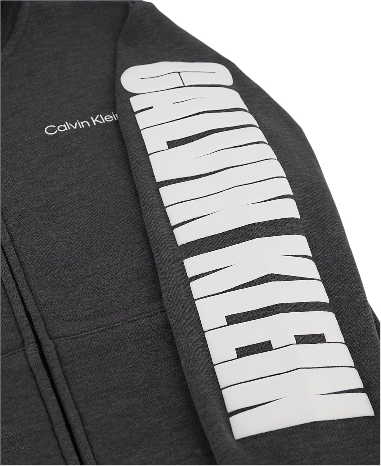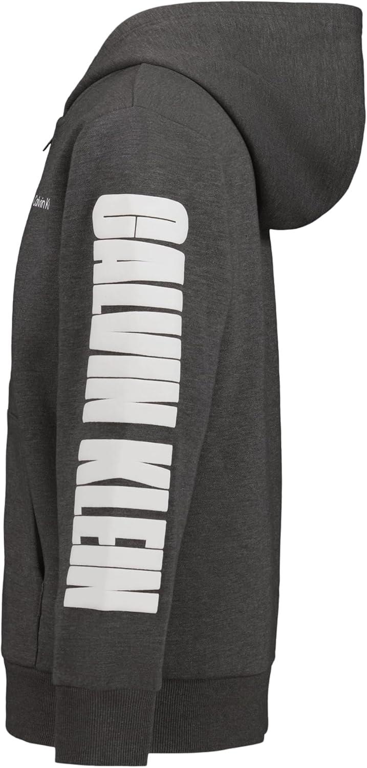 Calvin Klein Boys’ Long Sleeve Full Zip Fleece Hoodie(Impact Charcoal Heather)