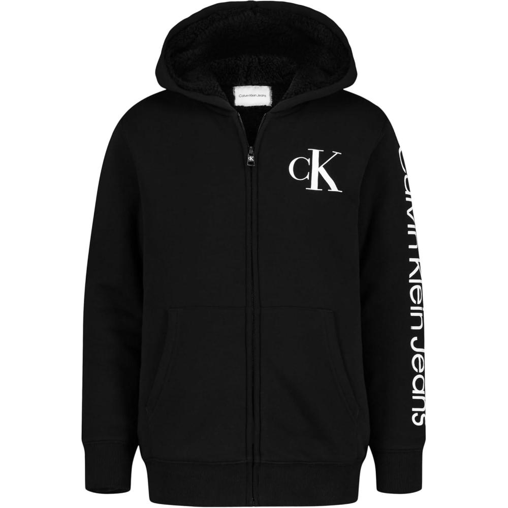 imageCalvin Klein Boys Long Sleeve Full Zip Fleece HoodieSherpalined Black