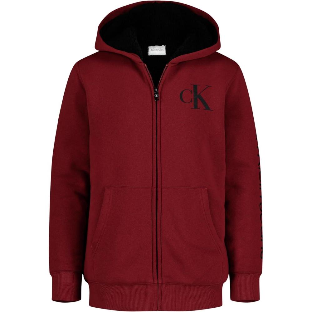 imageCalvin Klein Boys Long Sleeve Full Zip Fleece HoodieSherpalined Red Dahlia