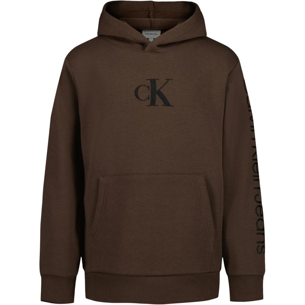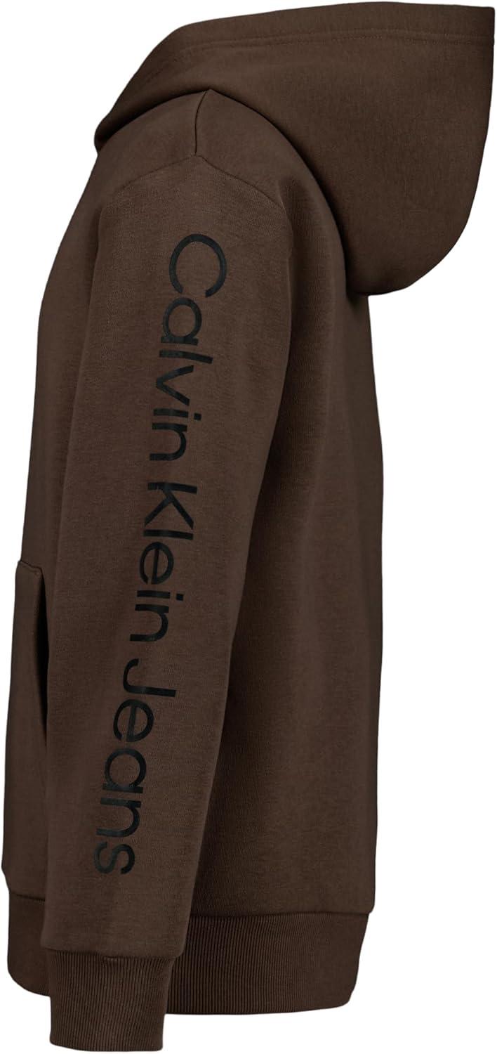 Calvin Klein boys Long Sleeve Pullover Fleece Hoodie(Impact Coffee Quartz)
