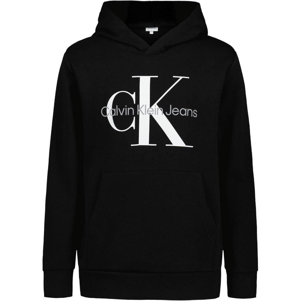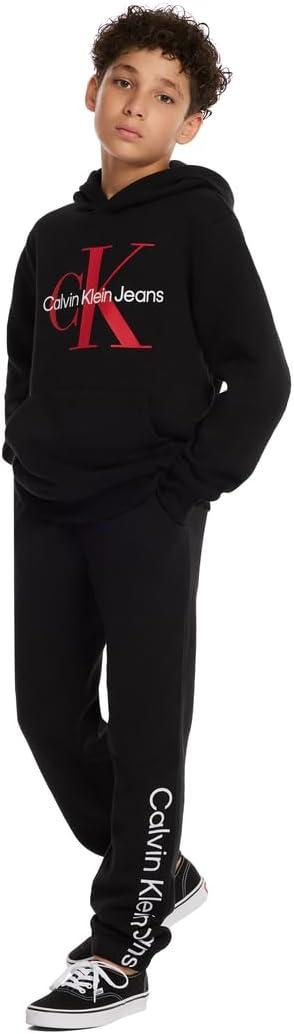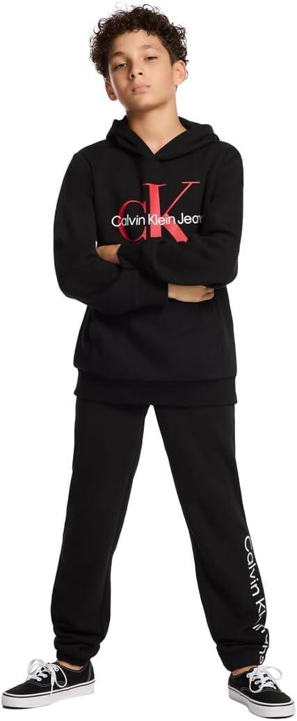 Calvin Klein boys Long Sleeve Pullover Fleece Hoodie(Old School Black)