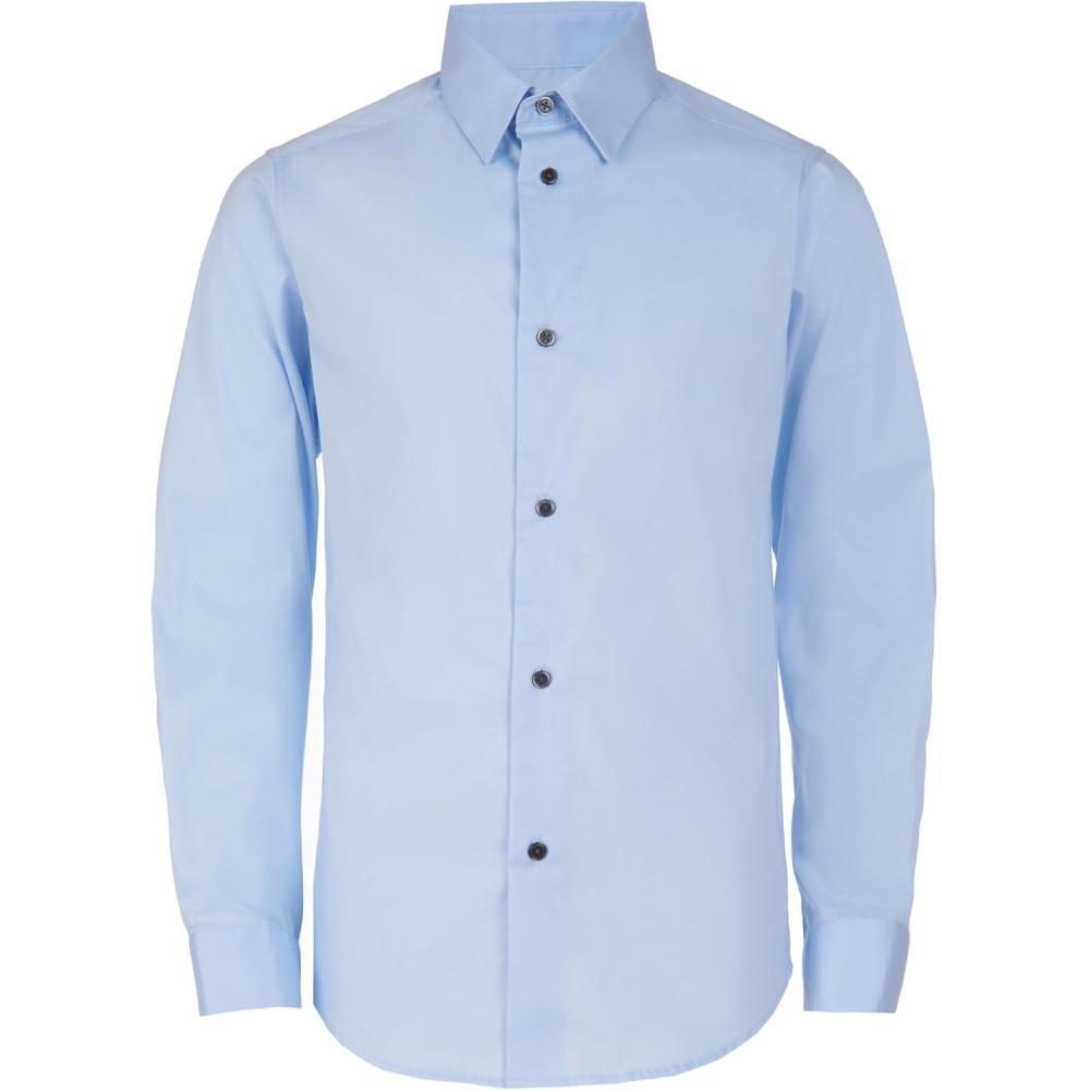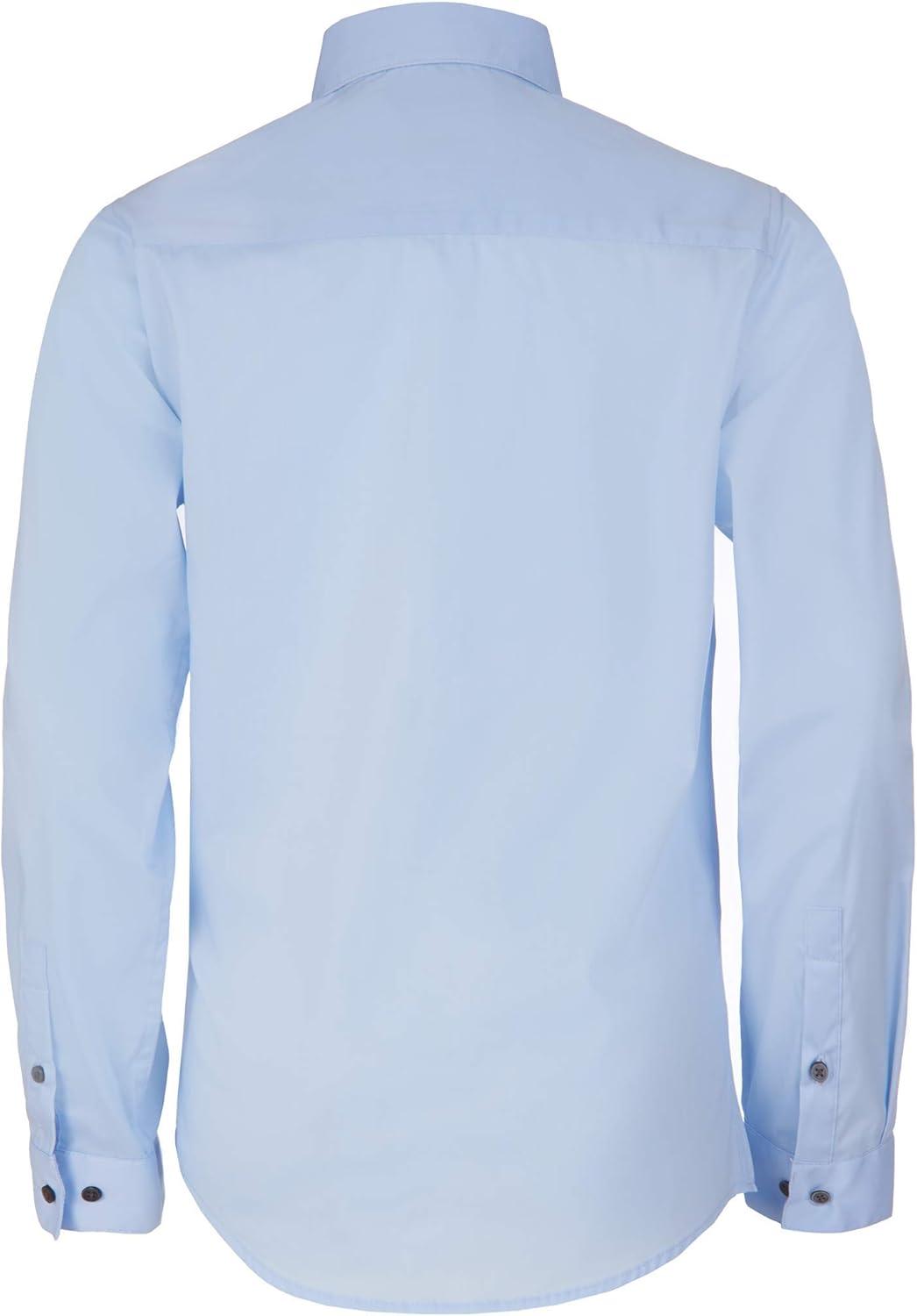 Calvin Klein Boys Long Sleeve Slim Fit Dress Shirt, Button-Down Style with Cuffs & Shirttail Hem(Blue)
