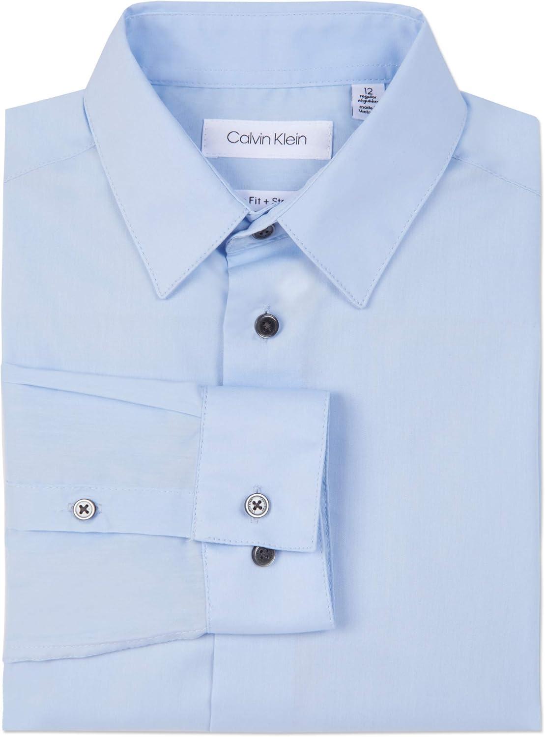 Calvin Klein Boys Long Sleeve Slim Fit Dress Shirt, Button-Down Style with Cuffs & Shirttail Hem(Ice Bay)