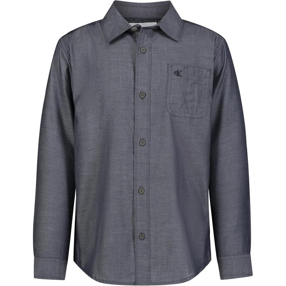 Calvin Klein Boys’ Long Sleeve Woven Button-Down Shirt(Dark Sapphire Herringbone)