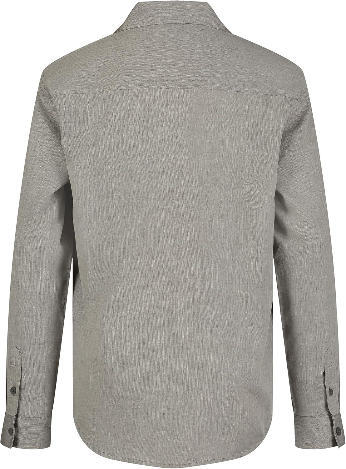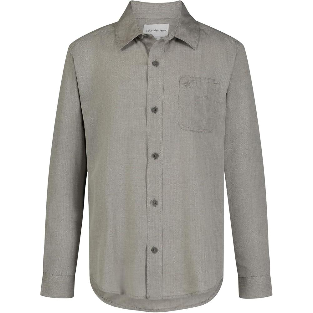 Calvin Klein Boys’ Long Sleeve Woven Button-Down Shirt(Mulch Herringbone)