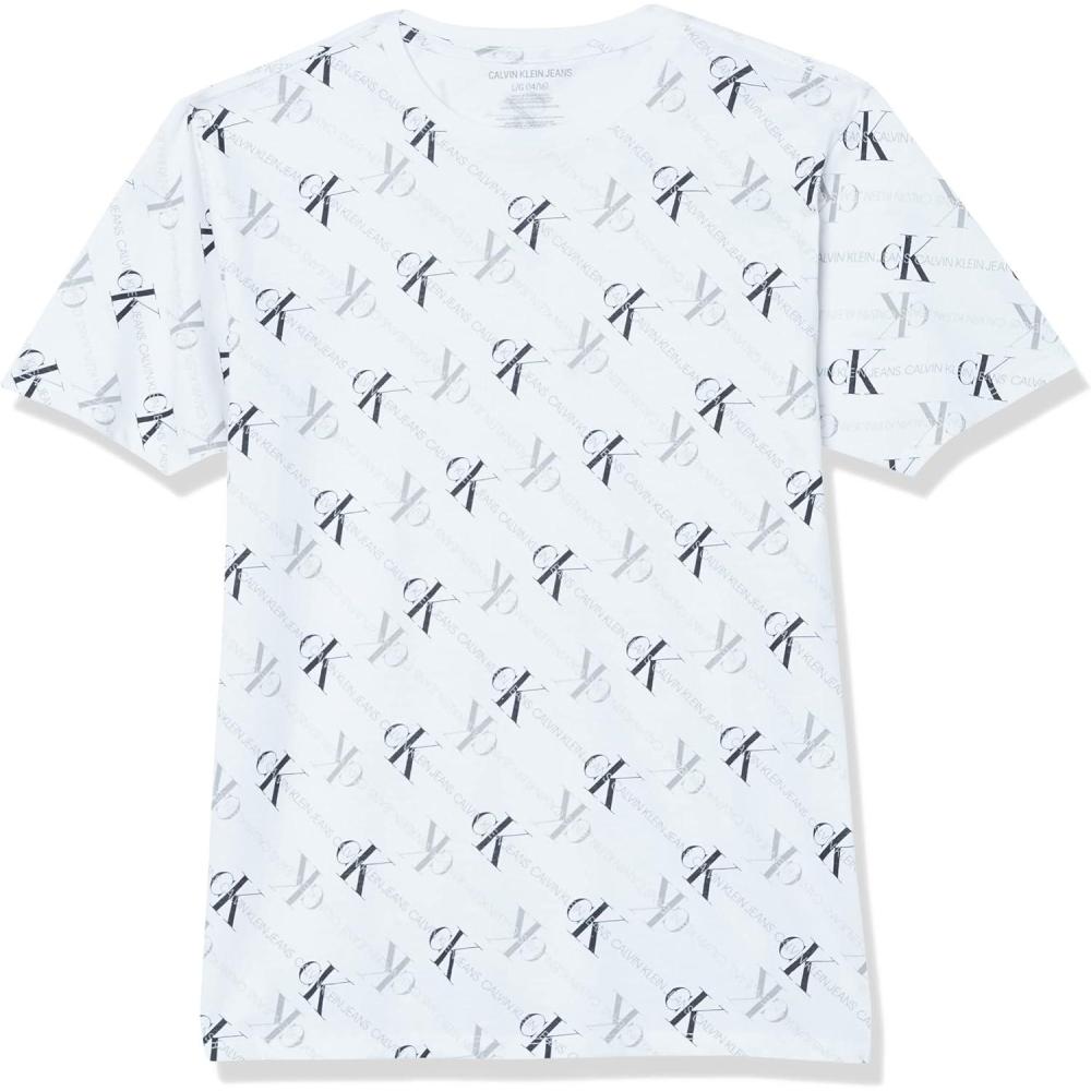 imageCalvin Klein Boys Short Sleeve Fashion Graphic Crew Neck TShirt Comfortable Relaxed FitAngled Ck White Eb25
