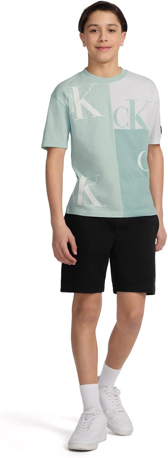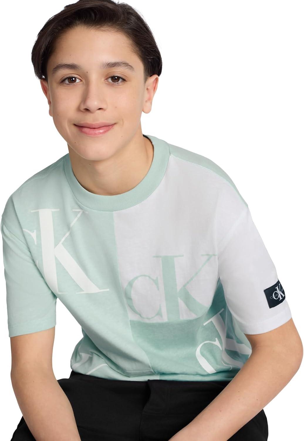 Calvin Klein Boys’ Short Sleeve Fashion Graphic Crew Neck T-Shirt, Comfortable, Relaxed Fit(Block Party Quarry)
