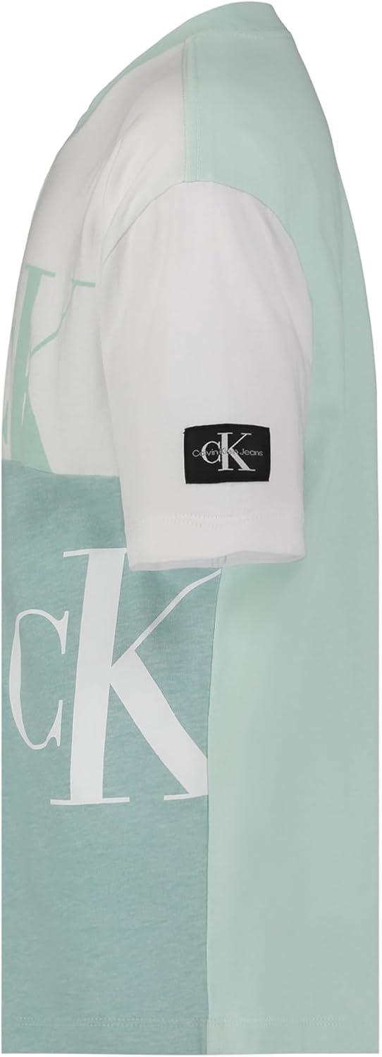 Calvin Klein Boys’ Short Sleeve Fashion Graphic Crew Neck T-Shirt, Comfortable, Relaxed Fit(Block Party Island Fossil)