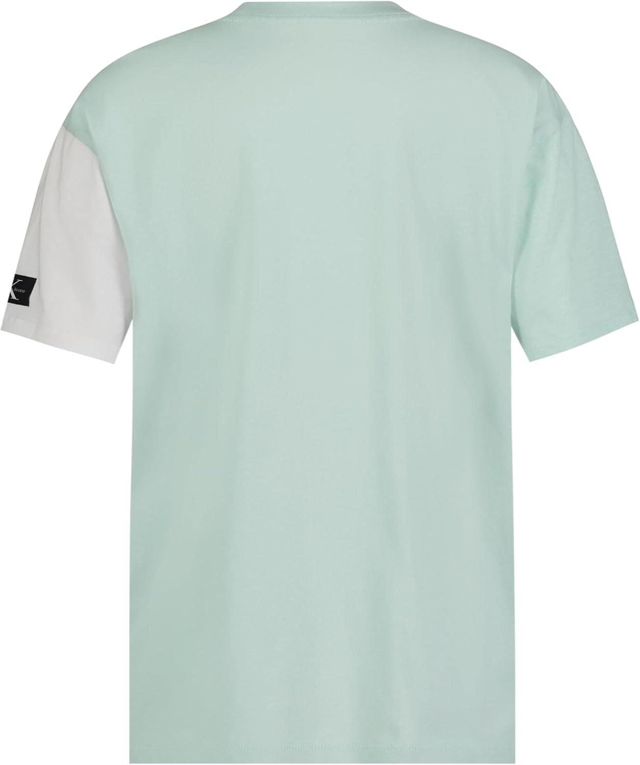 Calvin Klein Boys' Short Sleeve Fashion Graphic Crew Neck T-Shirt, Comfortable, Relaxed Fit(Block Party Lt Sage Heather)
