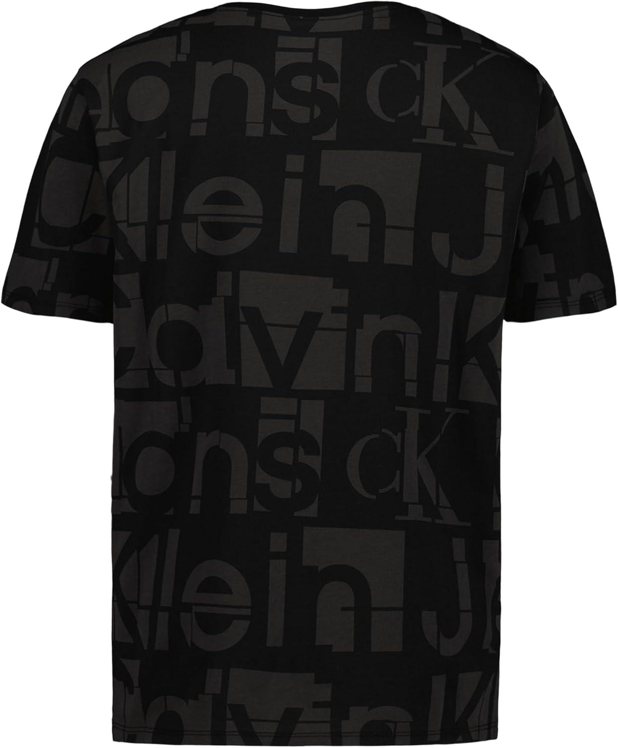 Calvin Klein Boys' Short Sleeve Fashion Graphic Crew Neck T-Shirt, Comfortable, Relaxed Fit(Blocky Print Blackened Pearl)
