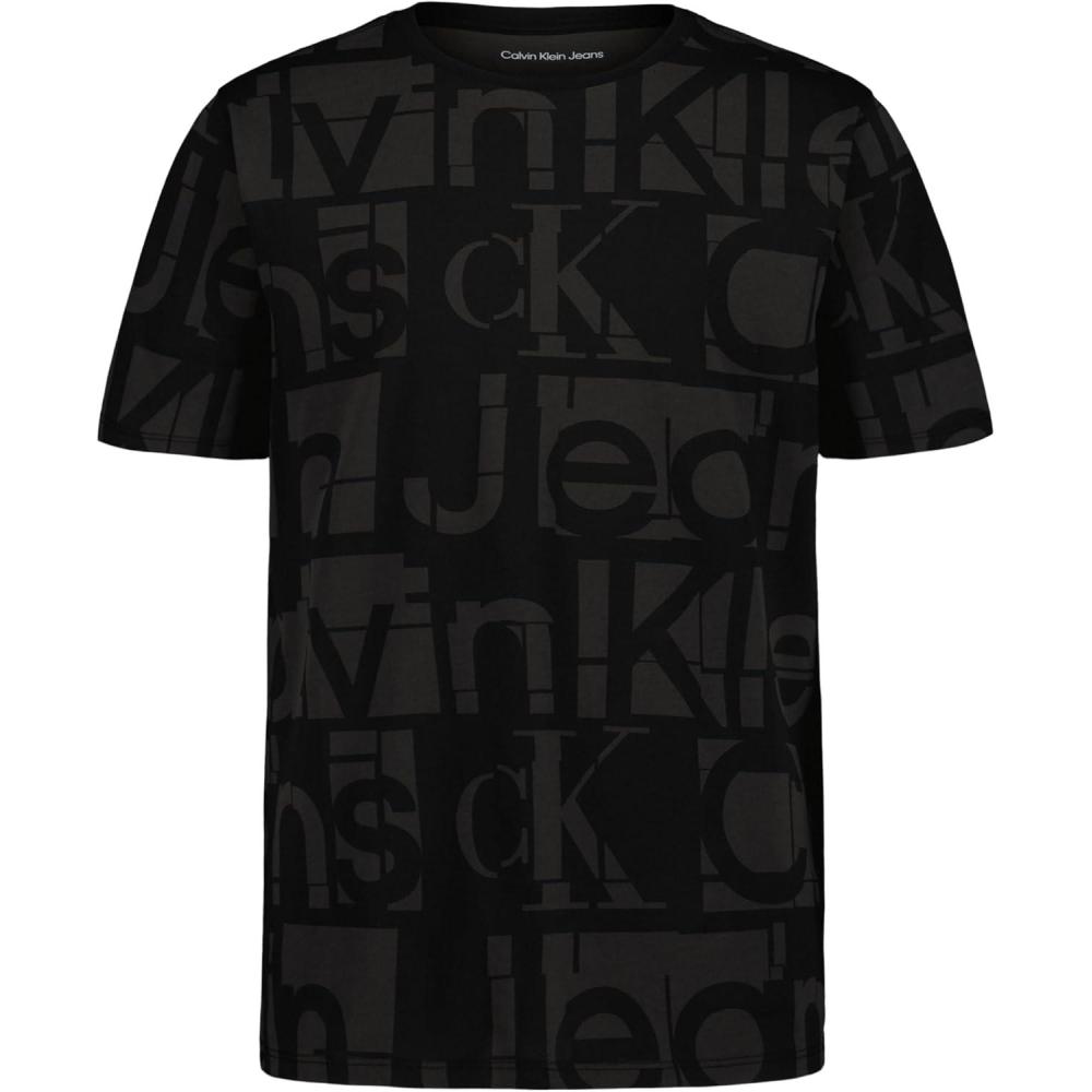 imageCalvin Klein Boys Short Sleeve Fashion Graphic Crew Neck TShirt Comfortable Relaxed FitAngled Ck Black Eb25