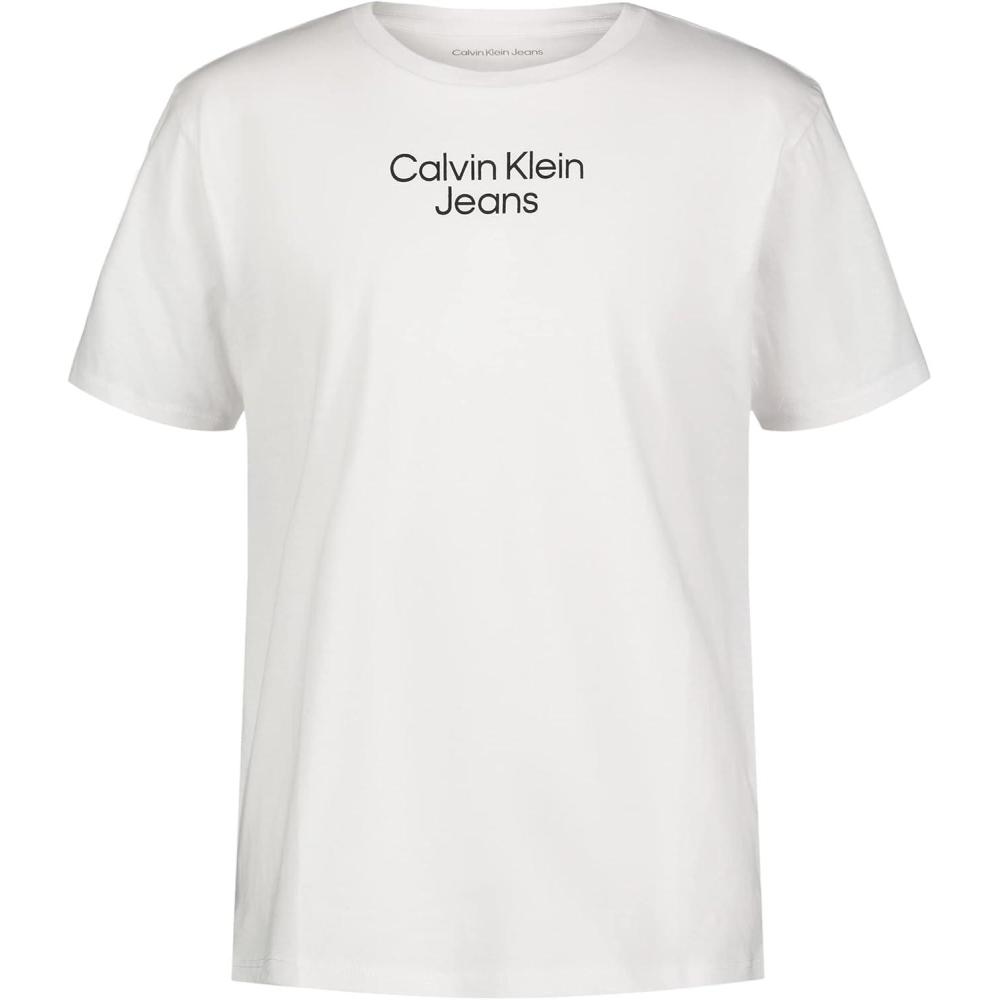 imageCalvin Klein Boys Short Sleeve Logo Crew Neck TShirt Soft Comfortable Relaxed FitCentered White