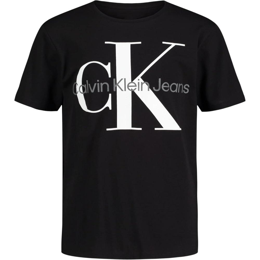Calvin Klein Boys' Short Sleeve Logo Crew Neck T-Shirt, Soft, Comfortable, Relaxed Fit(Classic Mono Black)