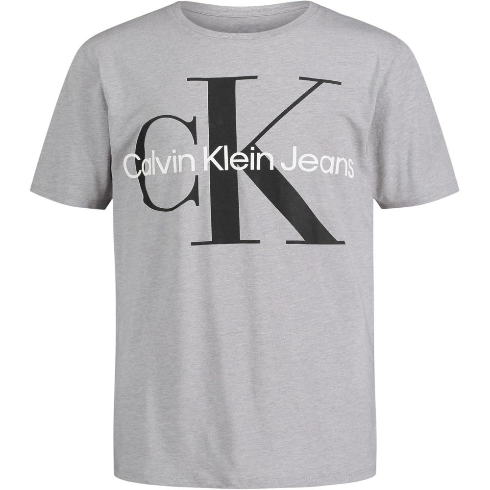 Calvin Klein Boys’ Short Sleeve Logo Crew Neck T-Shirt, Soft, Comfortable, Relaxed Fit(Mono Lt Grey Heather)