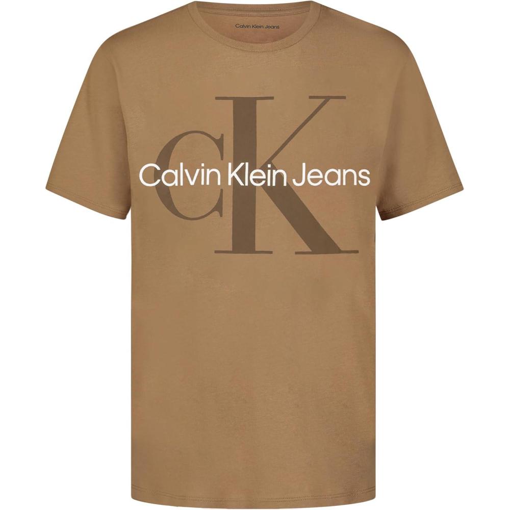 Calvin Klein Boys’ Short Sleeve Logo Crew Neck T-Shirt, Soft, Comfortable, Relaxed Fit(Mono Tiger’s Eye)