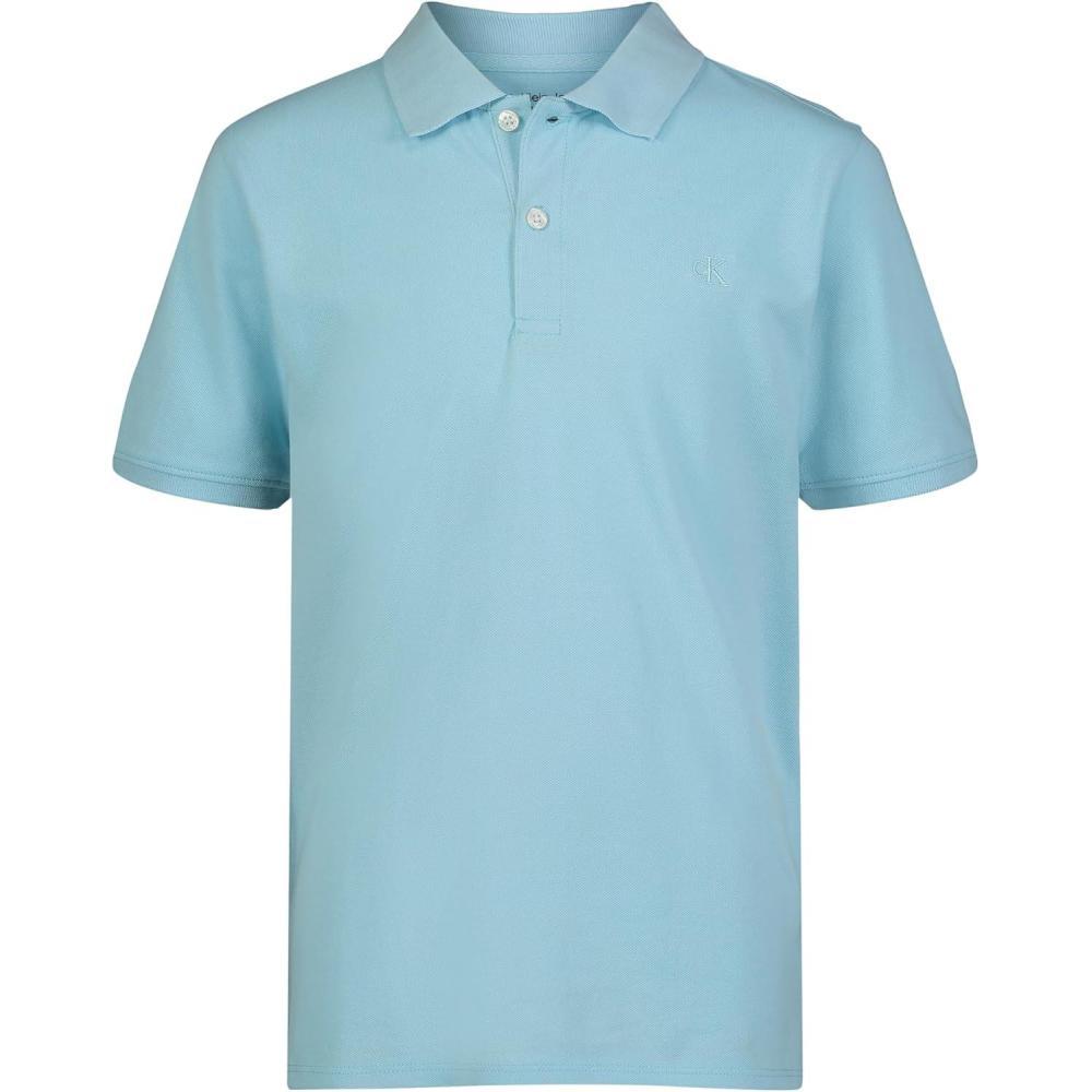 imageCalvin Klein Boys Short Sleeve Micro Pique Solid Polo Button Closure Soft ampamp ComfortableBlue Elixer