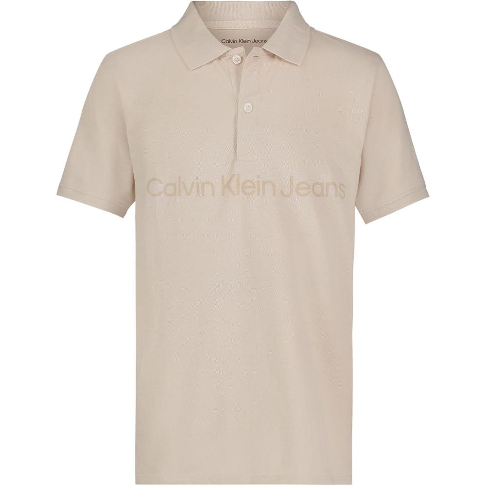 Calvin Klein Boys’ Short Sleeve Micro Pique Solid Polo, Button Closure, Soft & Comfortable(Clean Logo Oatmeal)