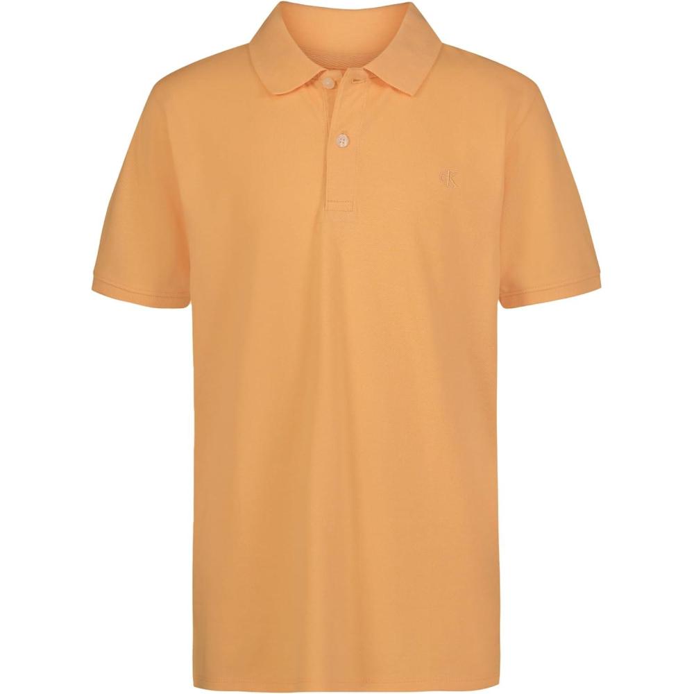 Calvin Klein Boys’ Short Sleeve Micro Pique Solid Polo, Button Closure, Soft & Comfortable(Peach Cobbler)