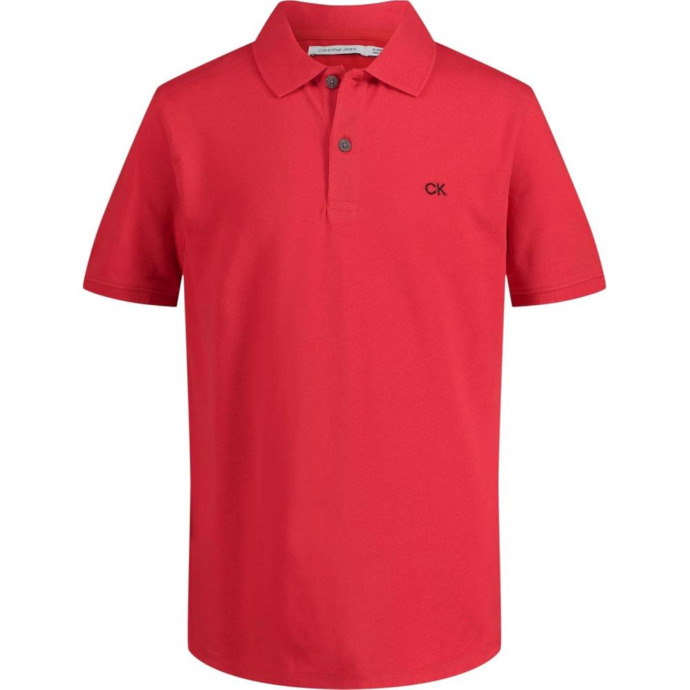 Calvin Klein Boys' Short Sleeve Micro Pique Solid Polo, Button Closure, Soft & Comfortable(Racing Red)
