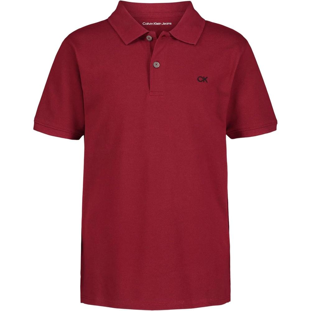 imageCalvin Klein Boys Short Sleeve Micro Pique Solid Polo Button Closure Soft ampamp ComfortableRed Carpet