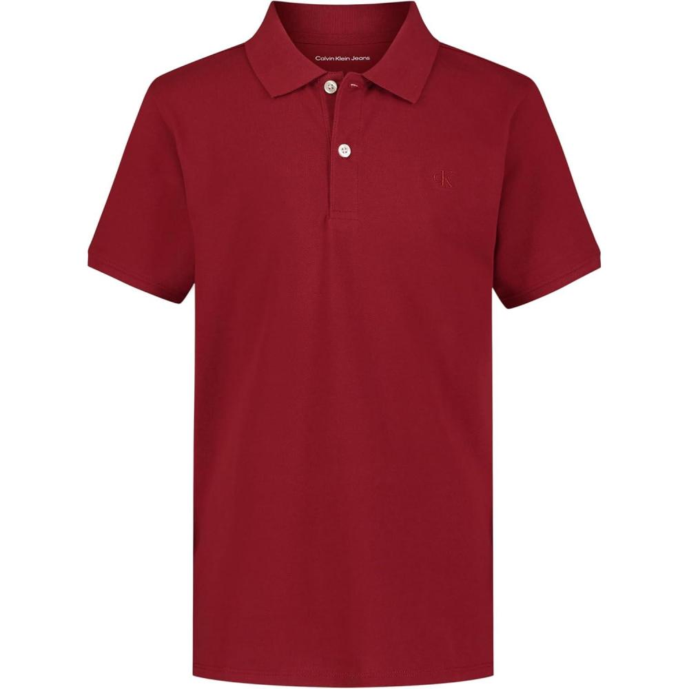 Calvin Klein Boys’ Short Sleeve Micro Pique Solid Polo, Button Closure, Soft & Comfortable(Racing Red)