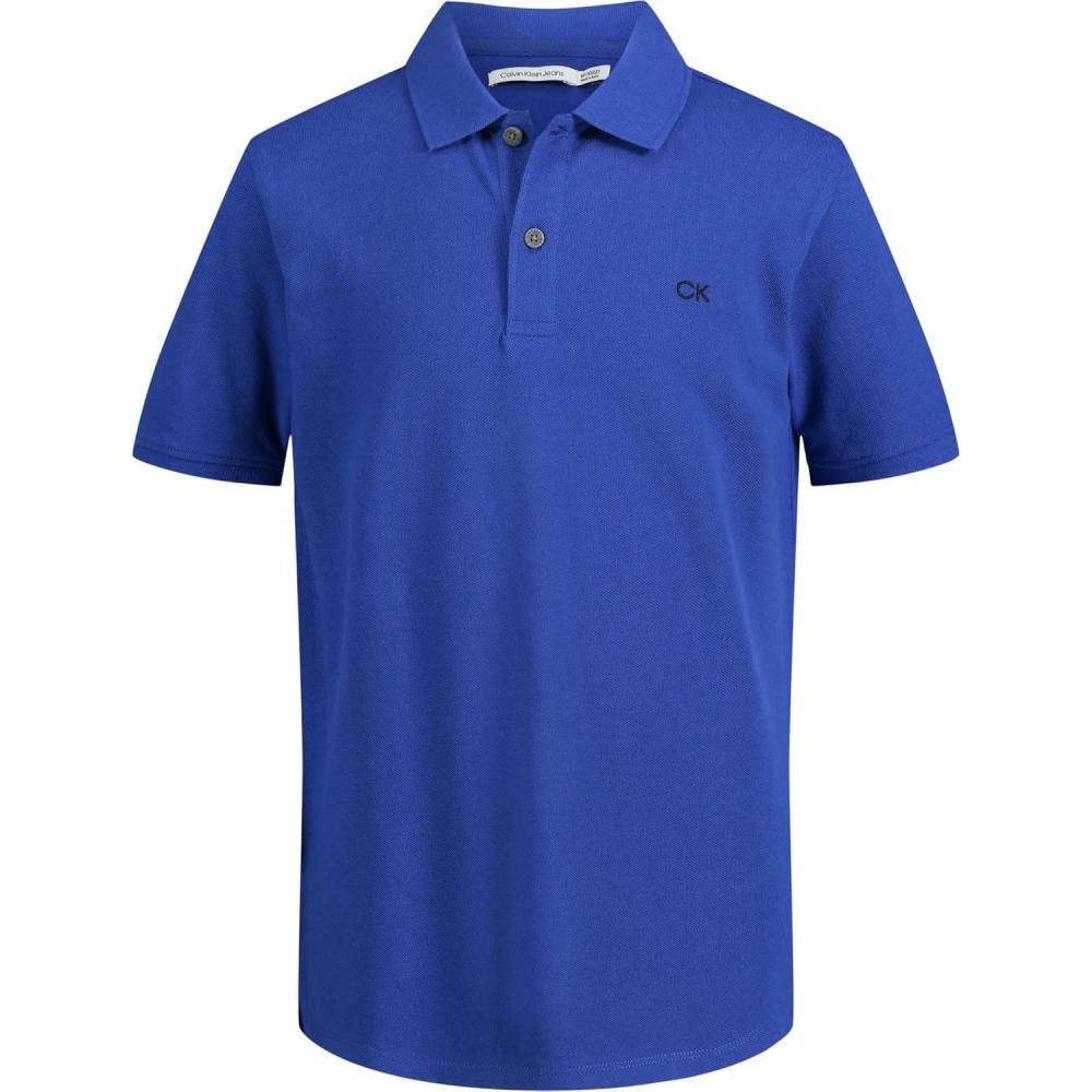 Calvin Klein Boys' Short Sleeve Micro Pique Solid Polo, Button Closure, Soft & Comfortable(Surf the Web)