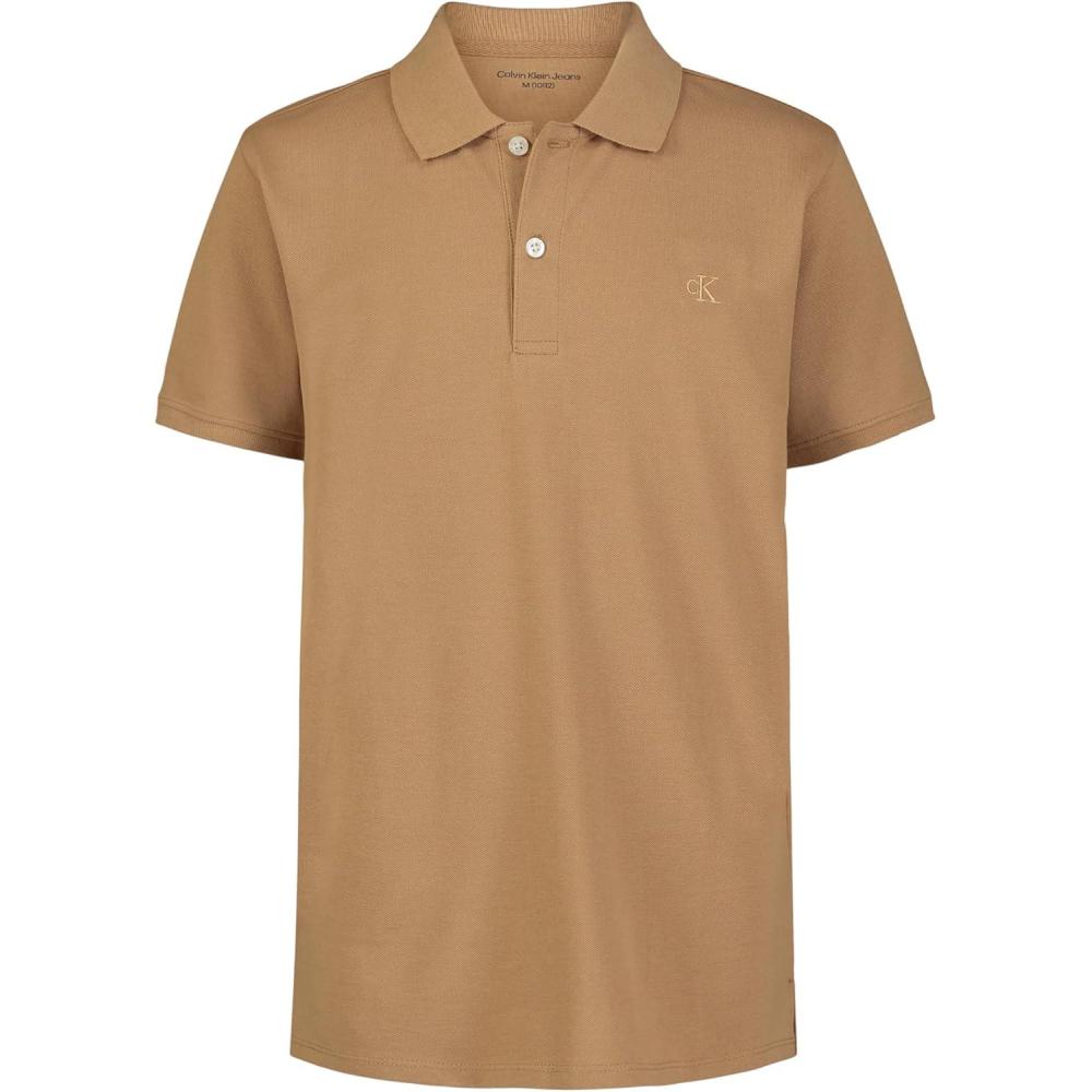 Calvin Klein Boys’ Short Sleeve Micro Pique Solid Polo, Button Closure, Soft & Comfortable(Tiger’s Eye)