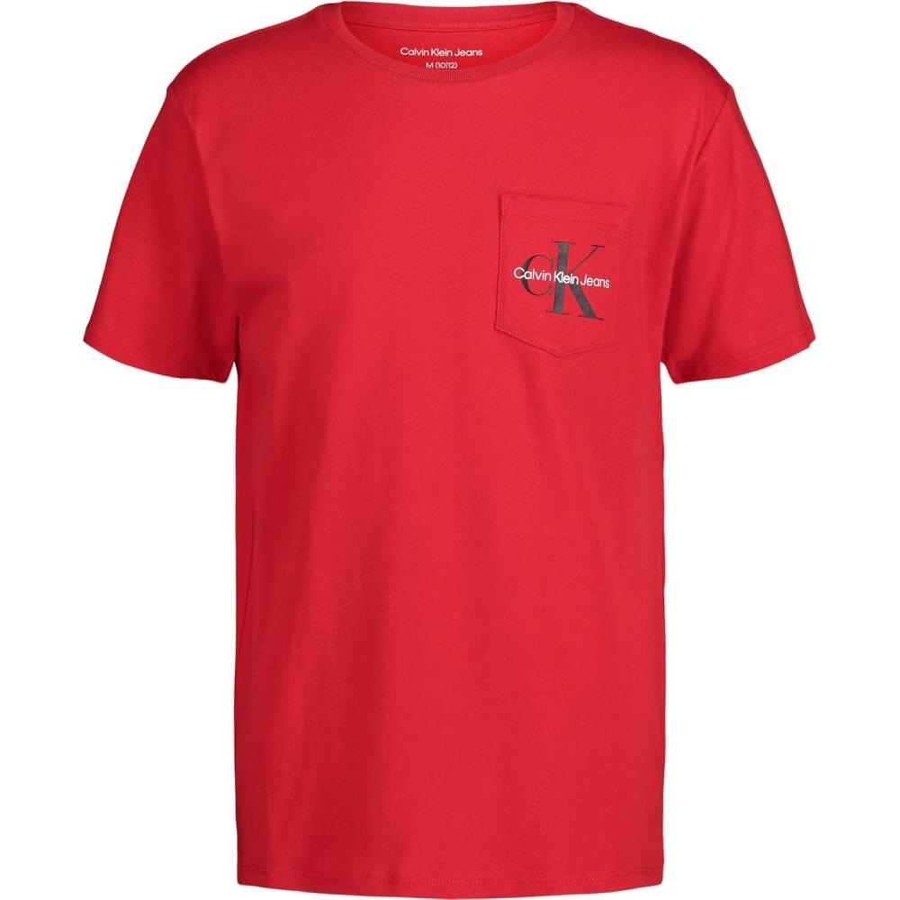 Calvin Klein Boys’ Short Sleeve Pocket Logo Crew Neck T-Shirt, Soft, Comfortable, Relaxed Fit(Classic Racing Red)
