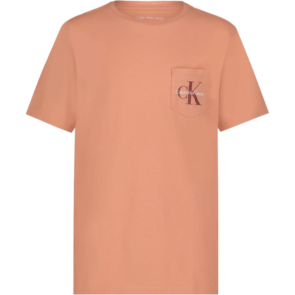 Calvin Klein Boys’ Short Sleeve Pocket Logo Crew Neck T-Shirt, Soft, Comfortable, Relaxed Fit(Clay)