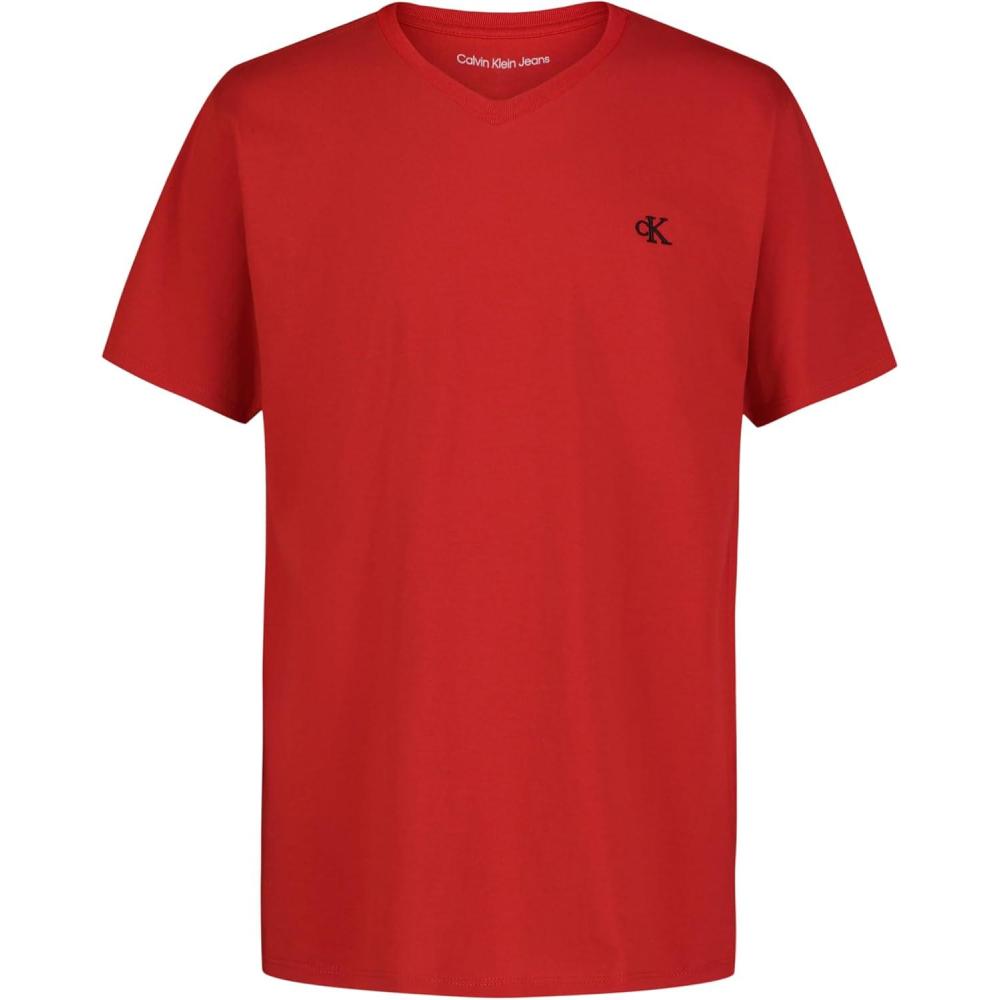 imageCalvin Klein Boys Short Sleeve Solid VNeck TShirt Soft Comfortable Relaxed FitRacing Red