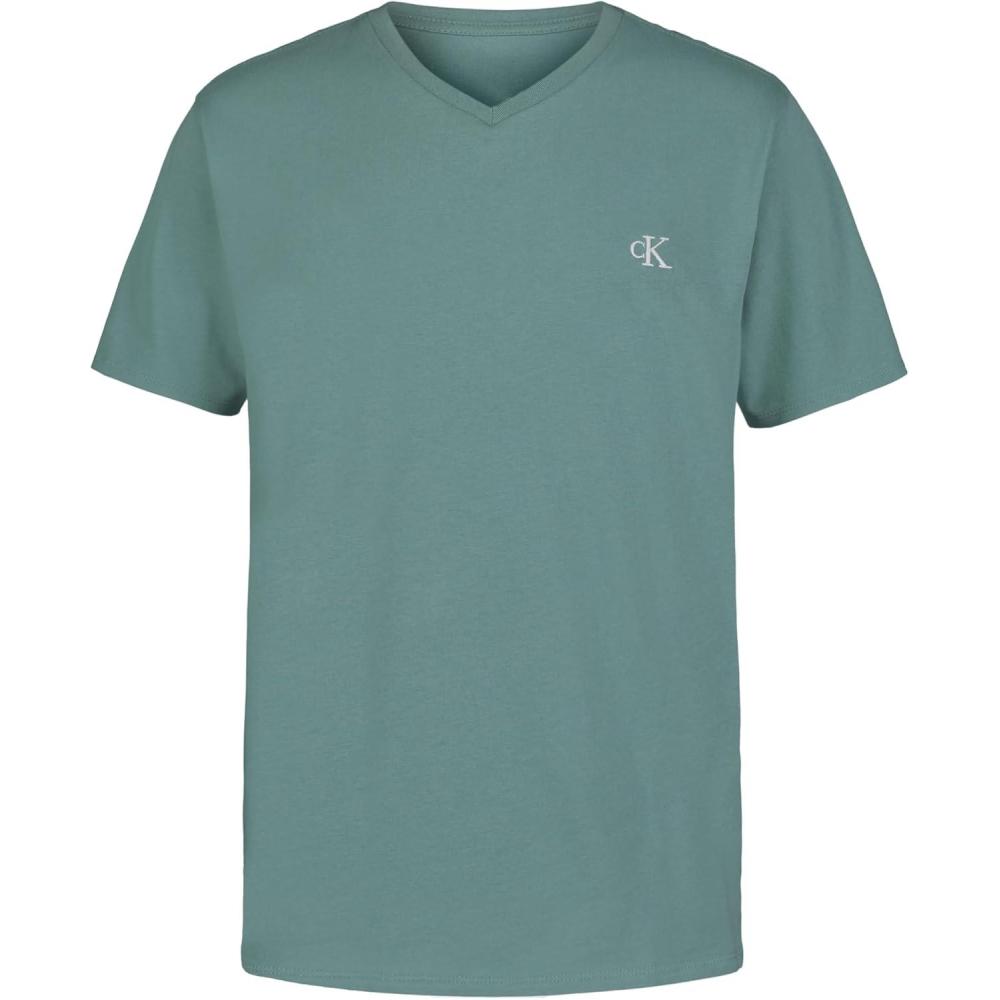 Calvin Klein Boys' Short Sleeve Solid V-Neck T-Shirt, Soft, Comfortable, Relaxed Fit(Teal)