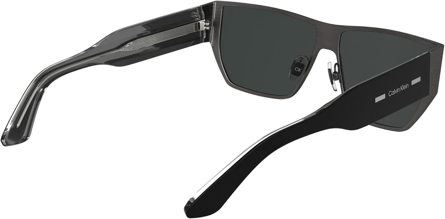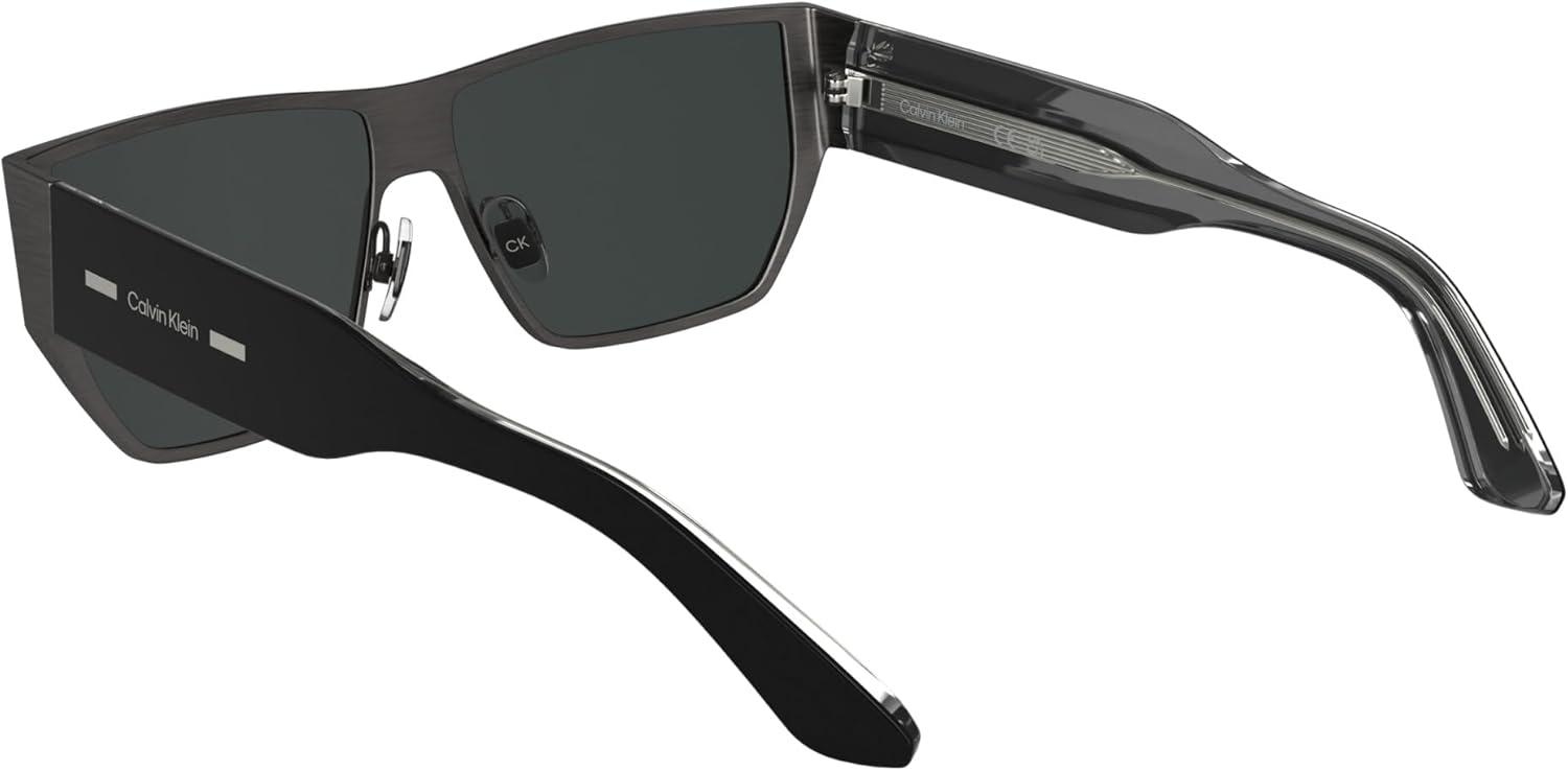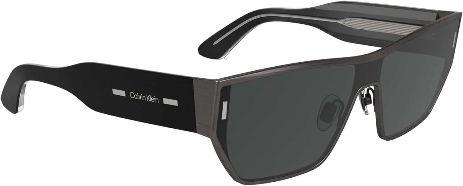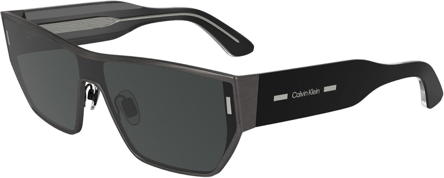 These Calvin Klein sunglasses are designed to be the standout piece of your look. The shield design reflects the brand's innovative spirit, while the thick acetate temples feature a two-tone effect, geometric details, and the Calvin Klein logo. Perfect for those seeking a distinctive and modern look.