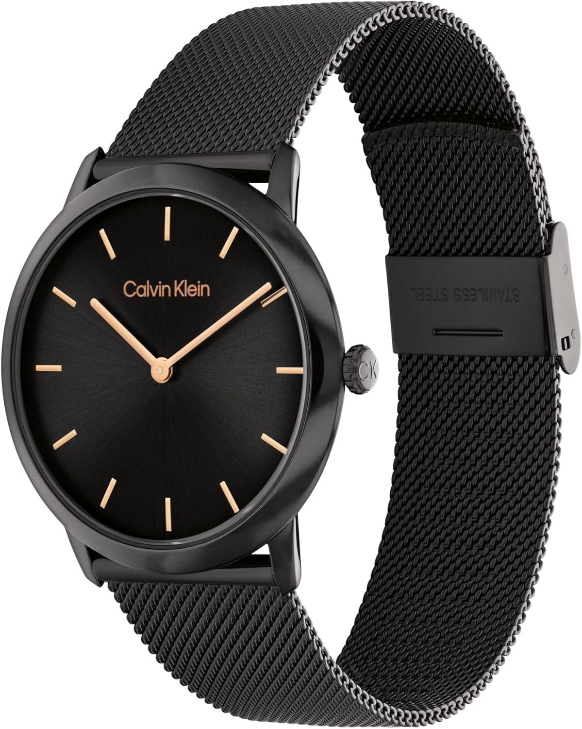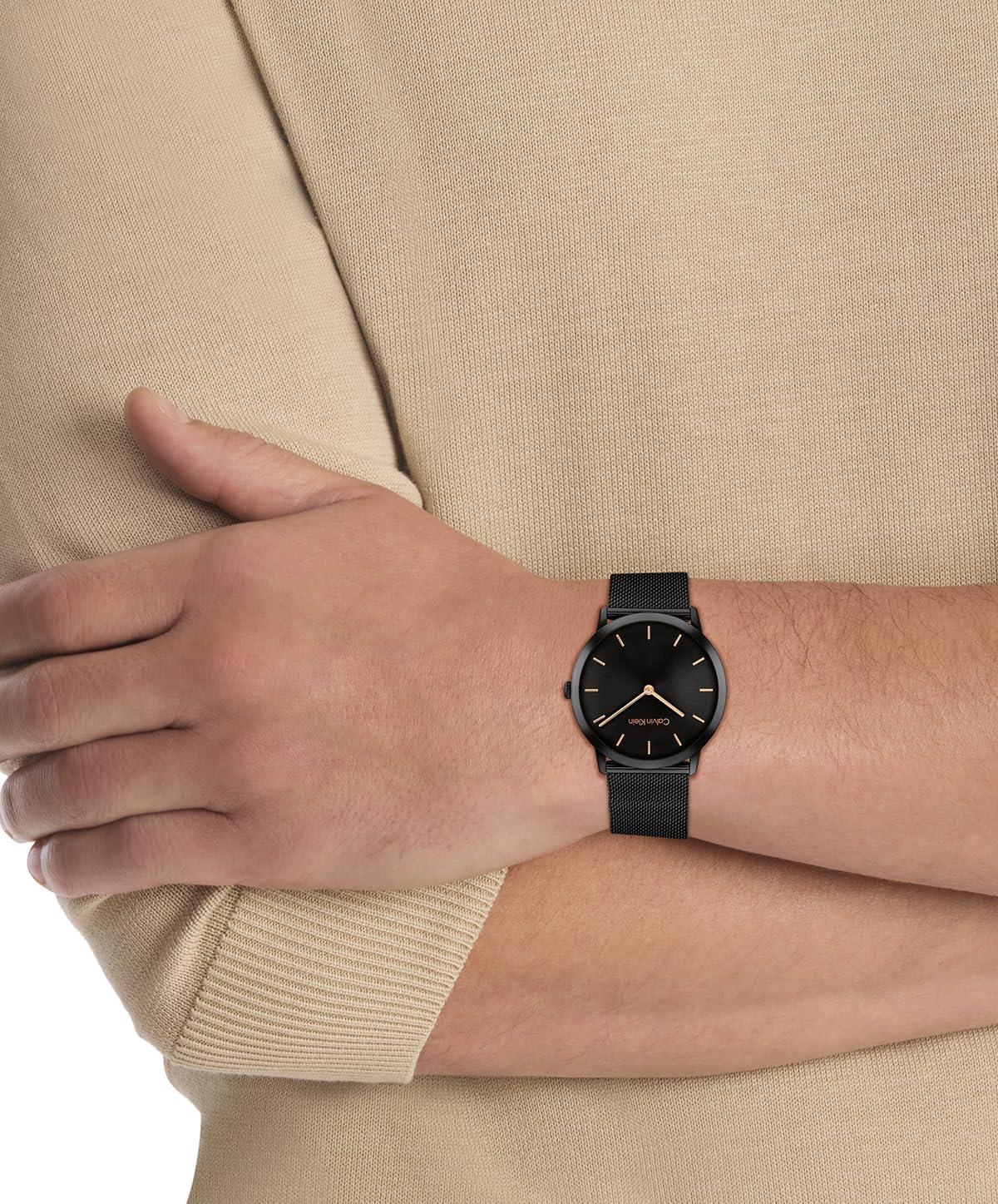Calvin Klein Exceptional - Women's and Men's 2H Quartz Watch Stainless Steel with Mesh Bracelet - Water Resistant 3 ATM/30 Meters - Trendy CK Watches for Him and Her - 37 mm(Black)