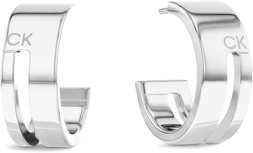 Calvin Klein Geometric Essentials Women's Hoop Earrings - Stainless Steel, Elegant Jewelry, Perfect for Any Occasion, Designer Wear - Gift for Her(Silver)