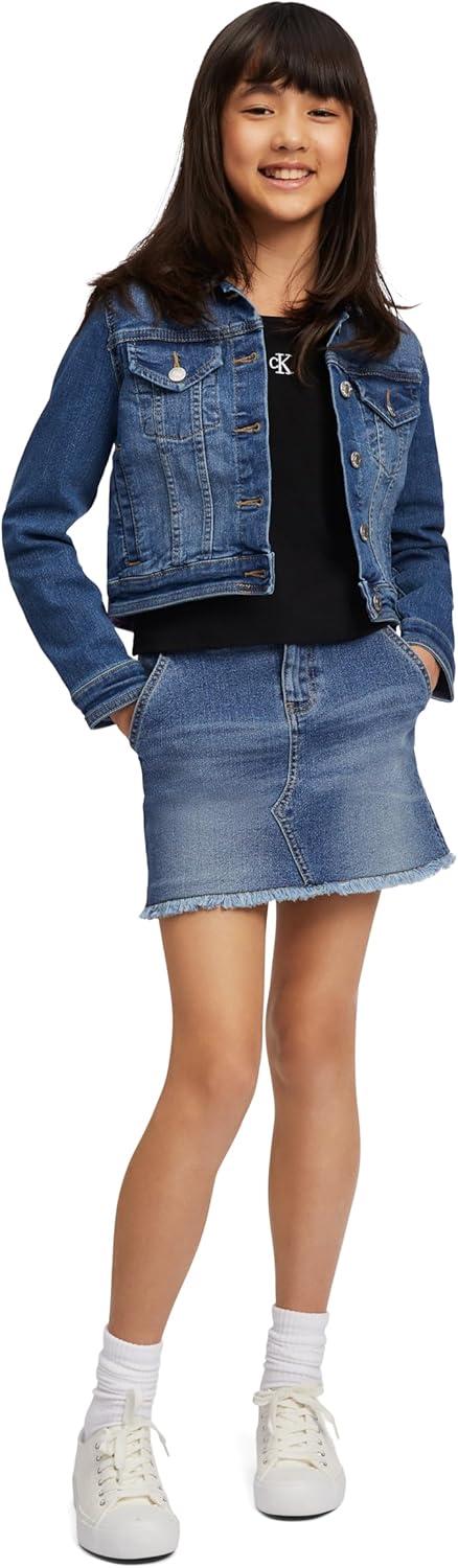 Calvin Klein Girls' Basic Jean Jacket, Stretch Denim with Button Closure, Casual Style(Authentic)