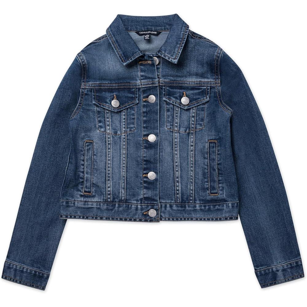 imageCalvin Klein Girls Basic Jean Jacket Stretch Denim with Button Closure Casual StyleAuthentic