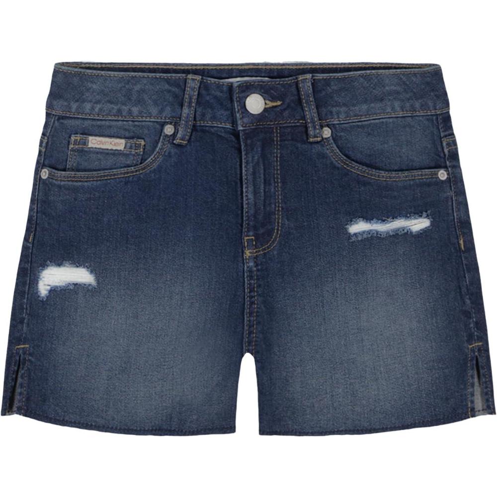 Calvin Klein Girls’ Boyfriend Fit Stretch Denim Jean Shorts(Authentic/Cut Off)