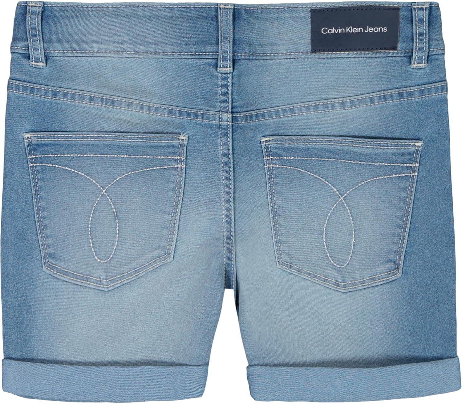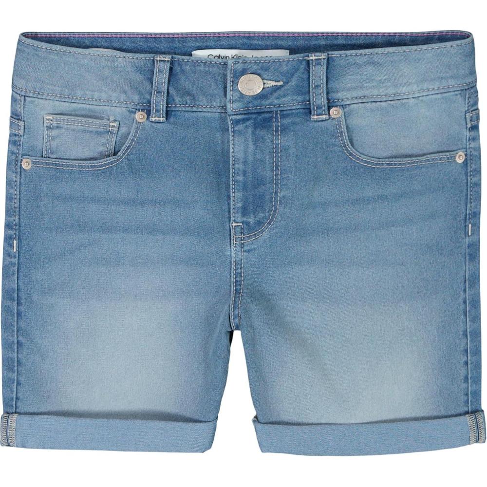 Calvin Klein Girls’ Boyfriend Fit Stretch Denim Jean Shorts(Cirrus/Cuff)