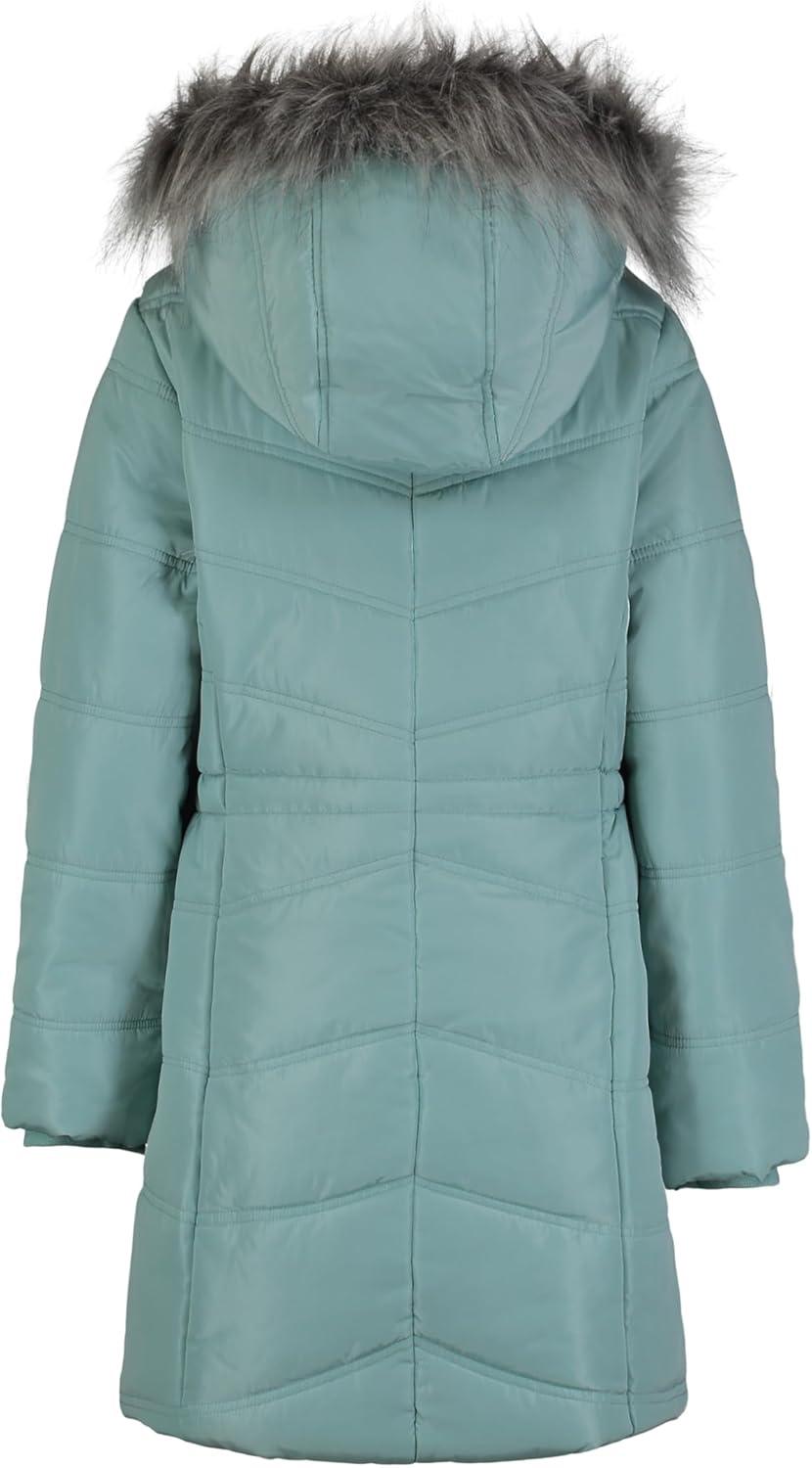 Calvin Klein Girls' Hooded Winter Puffer Jacket, Full-Length Heavyweight Coat with Fleece Lining(Aerial Aqua)