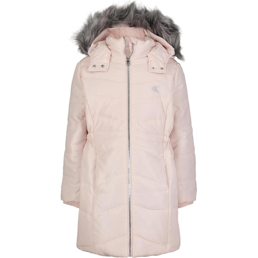 imageCalvin Klein Girls Hooded Winter Puffer Jacket FullLength Heavyweight Coat with Fleece LiningAerial Silver Peony