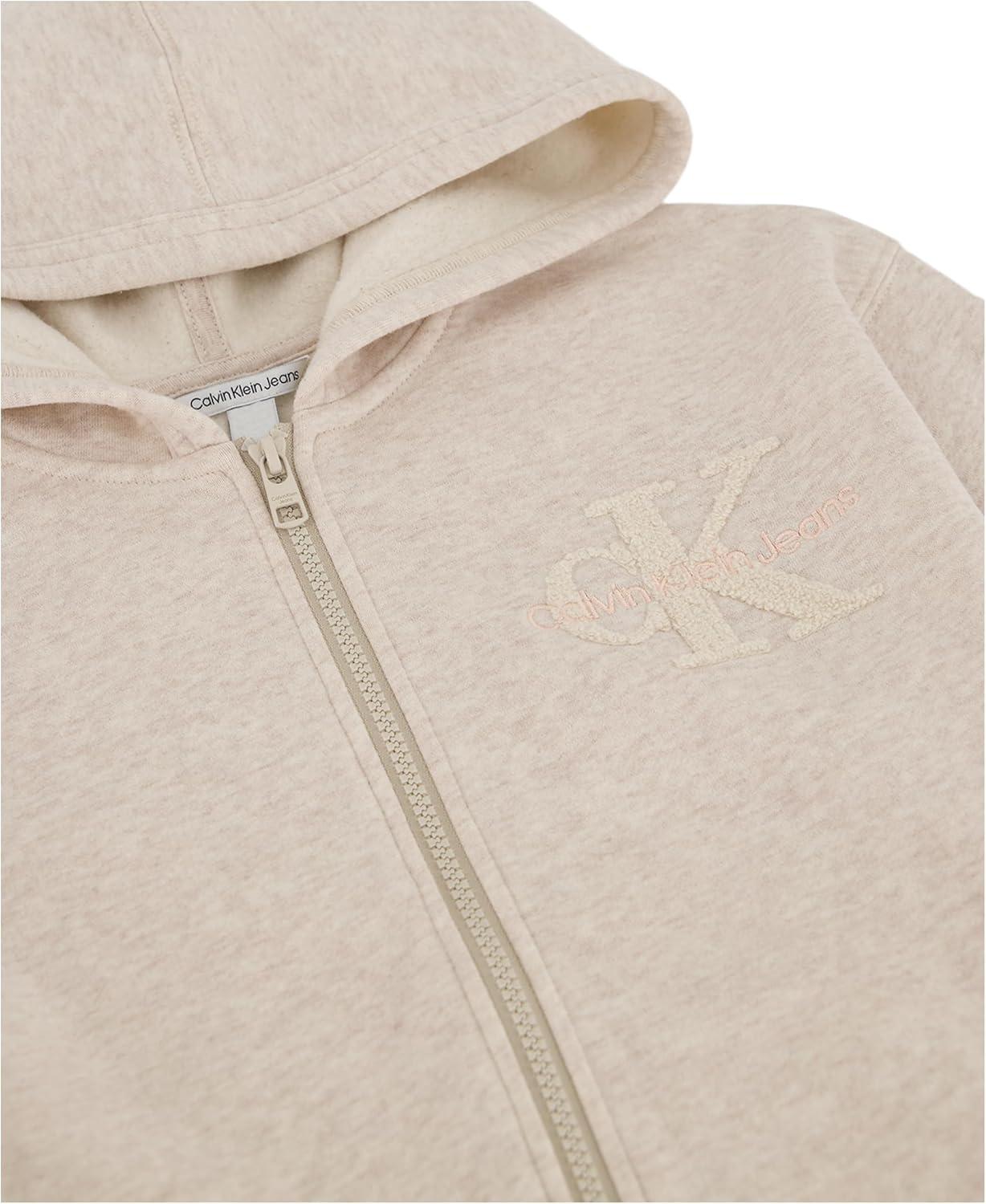Calvin Klein Girls' Long Sleeve Full Zip Fleece Hoodie Sweatshirt(Taupe Heather)